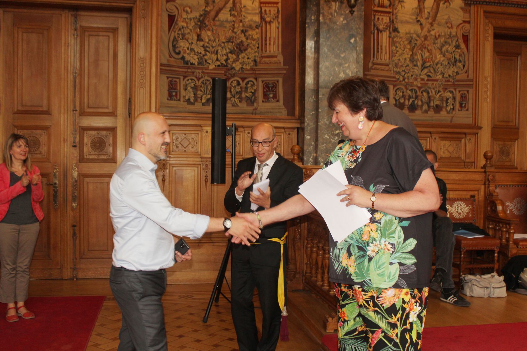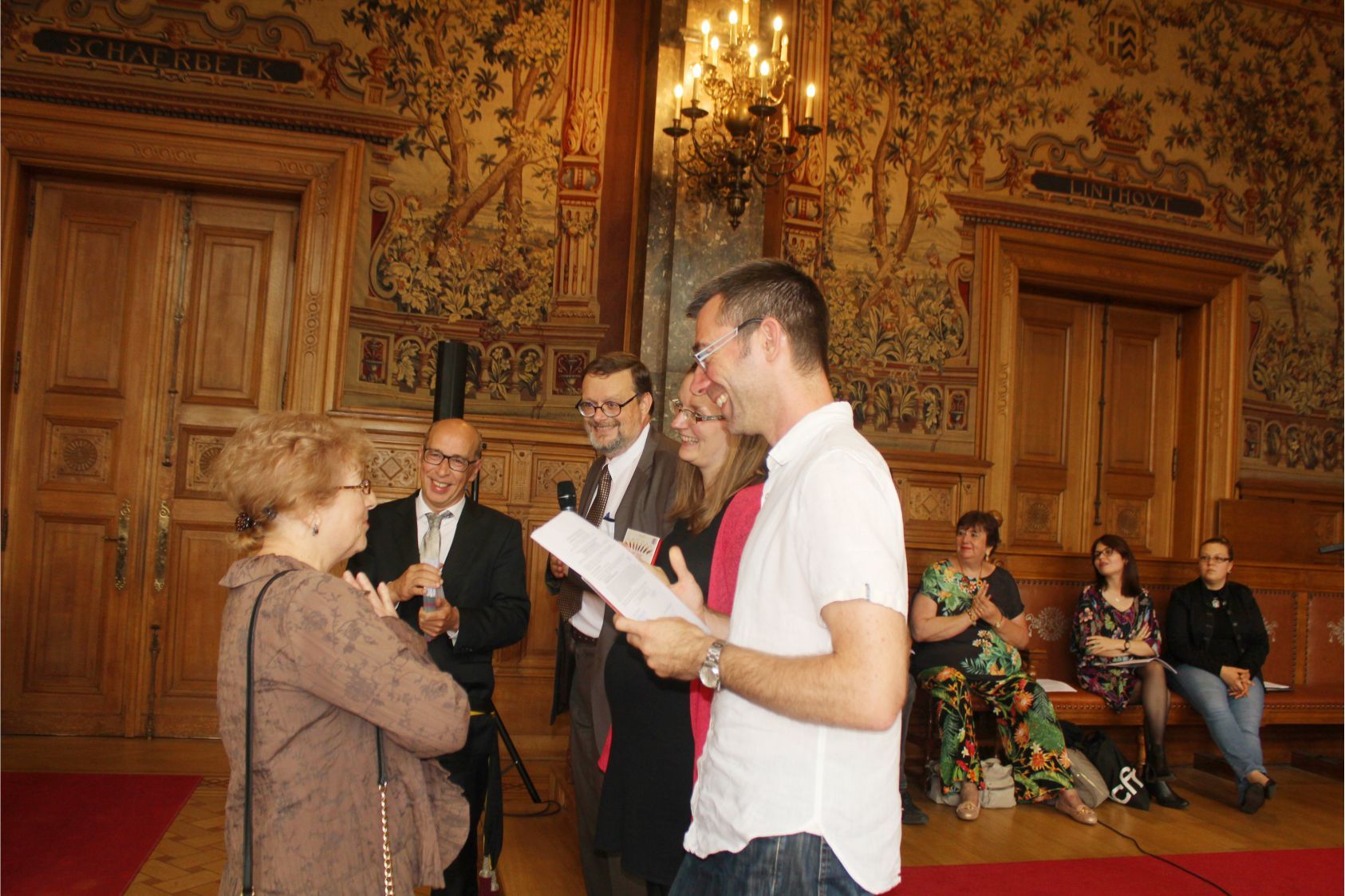 La remise a eu lieu à la commune de Schaerbeek en la présence de Monsieur Jean Louis Brismee, Directeur de l’Enseignement de promotion Sociale .