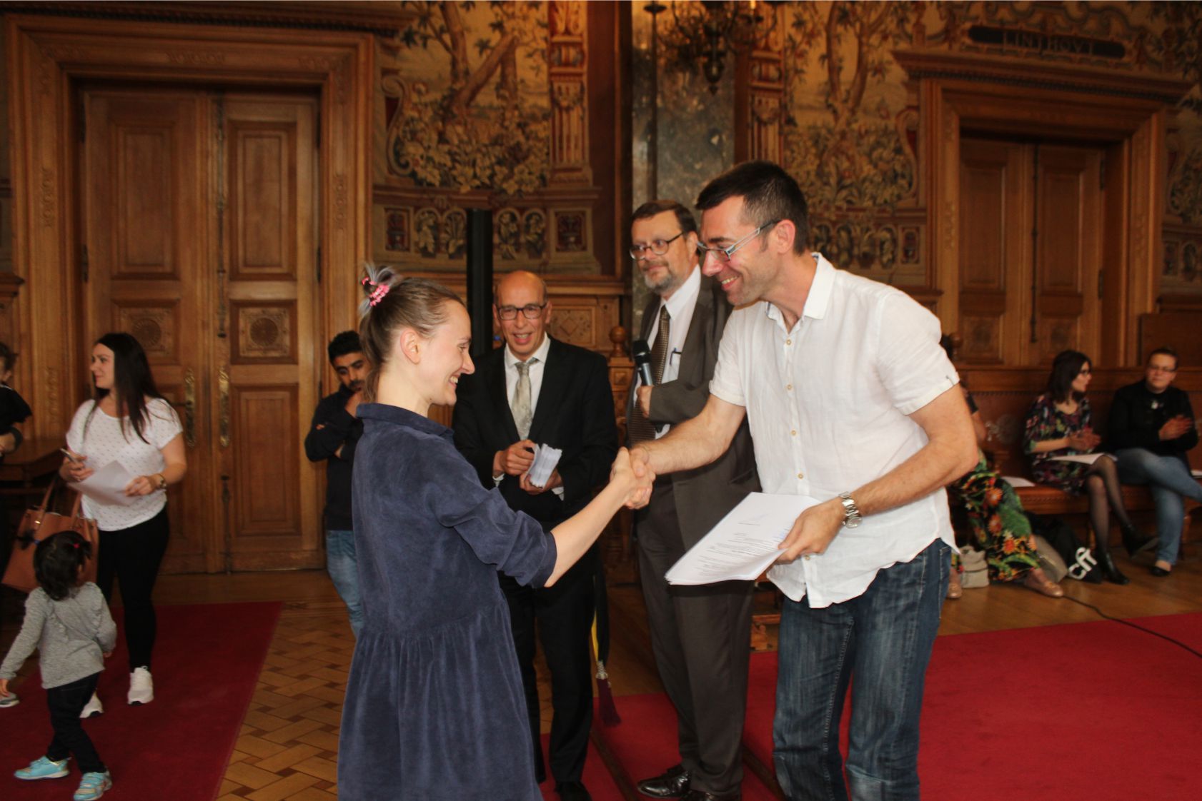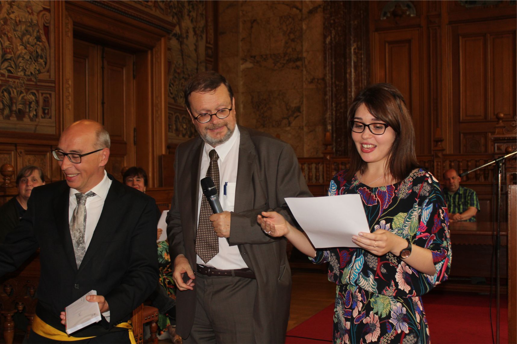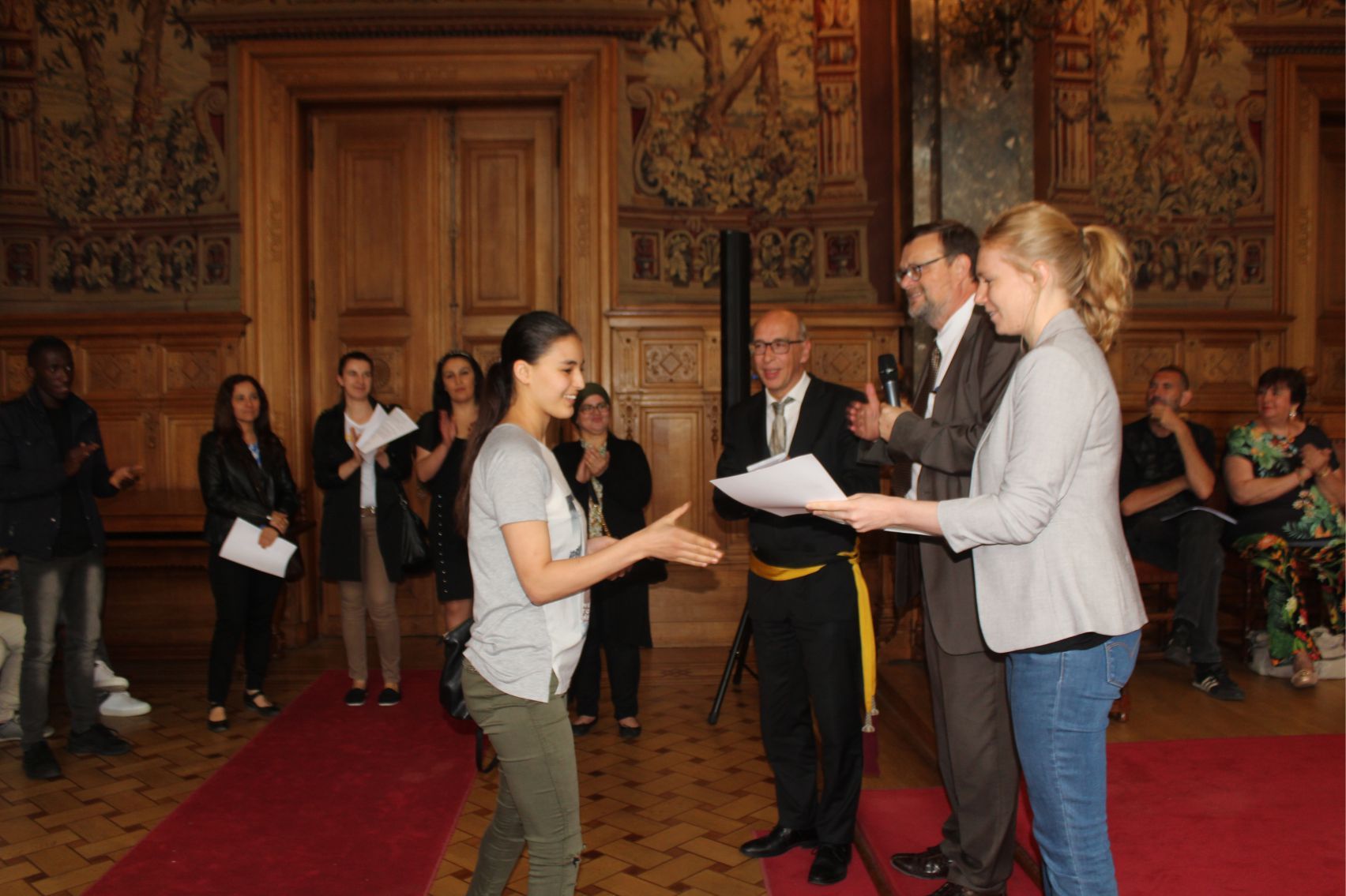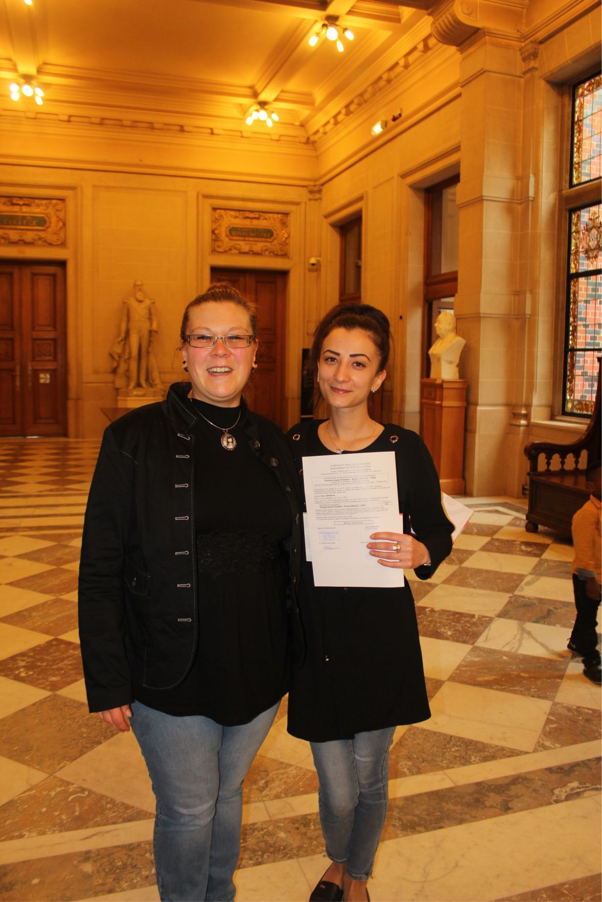Fransızca, Almanca ve İngilizce kurs hocaları Patricia Debeule, Mallory Sansone, Anaïs Fisson, Nathalie Faynsztein, Aude Brismee, Thomas Demey, Catherine Hubert, fabienne Gheysens, Dominique, Françoise, Bernard adlı hocaların ellerinden sertfikalarını alan kursiyerlerin heyecanları gözlerinden okunuyordu.