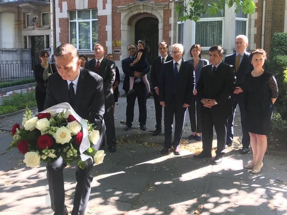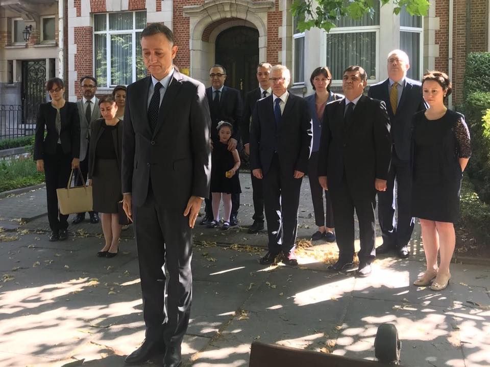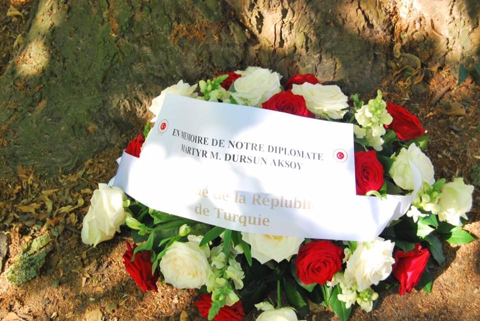 Belçika’daki tüm diplomatik misyonlarımızdan temsilcilerin katıldığı anma töreni merhum Dursun Aksoy’un vurulduğu noktaya çelenk bırakılması ve bir dakikalık saygı duruşunda bulunulmasıyla başladı.