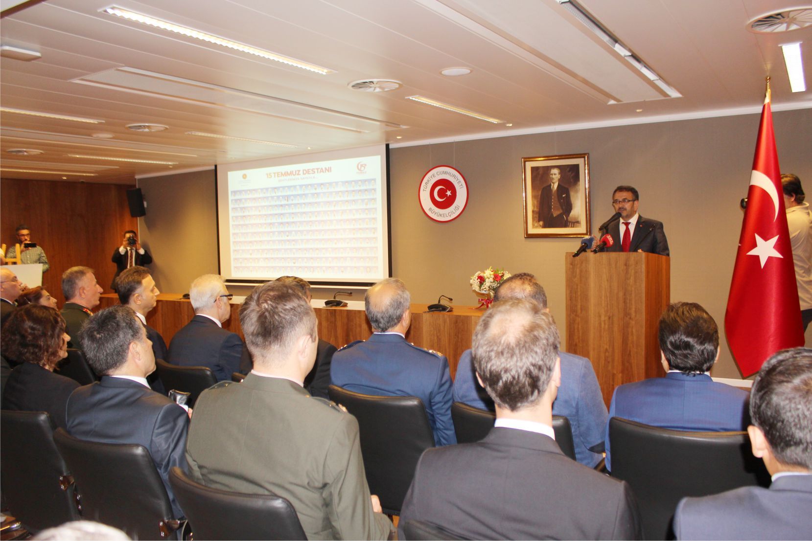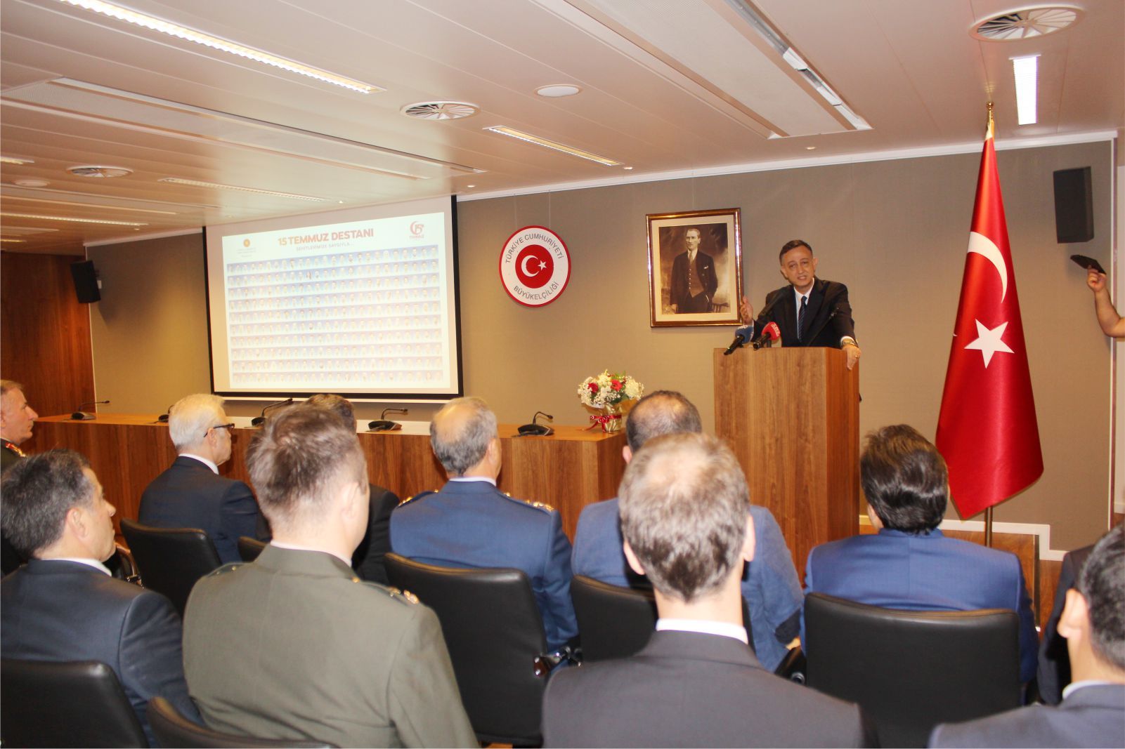 “Sayın davetliler inanıyorum ki, ’15 Temmuz deyince’ hepinizin aklına hain FETÖ darbe kalkışmasında şehit olan ve gazi olanlar aklınıza geliyordur. Öncelikle hain darbeye karşı demokrasimizi ve cumhuriyetimizi canları pahasına koruyarak, şehit olan 251 şehidi, rahmetle anıyorum. Ruhları şad olsun.