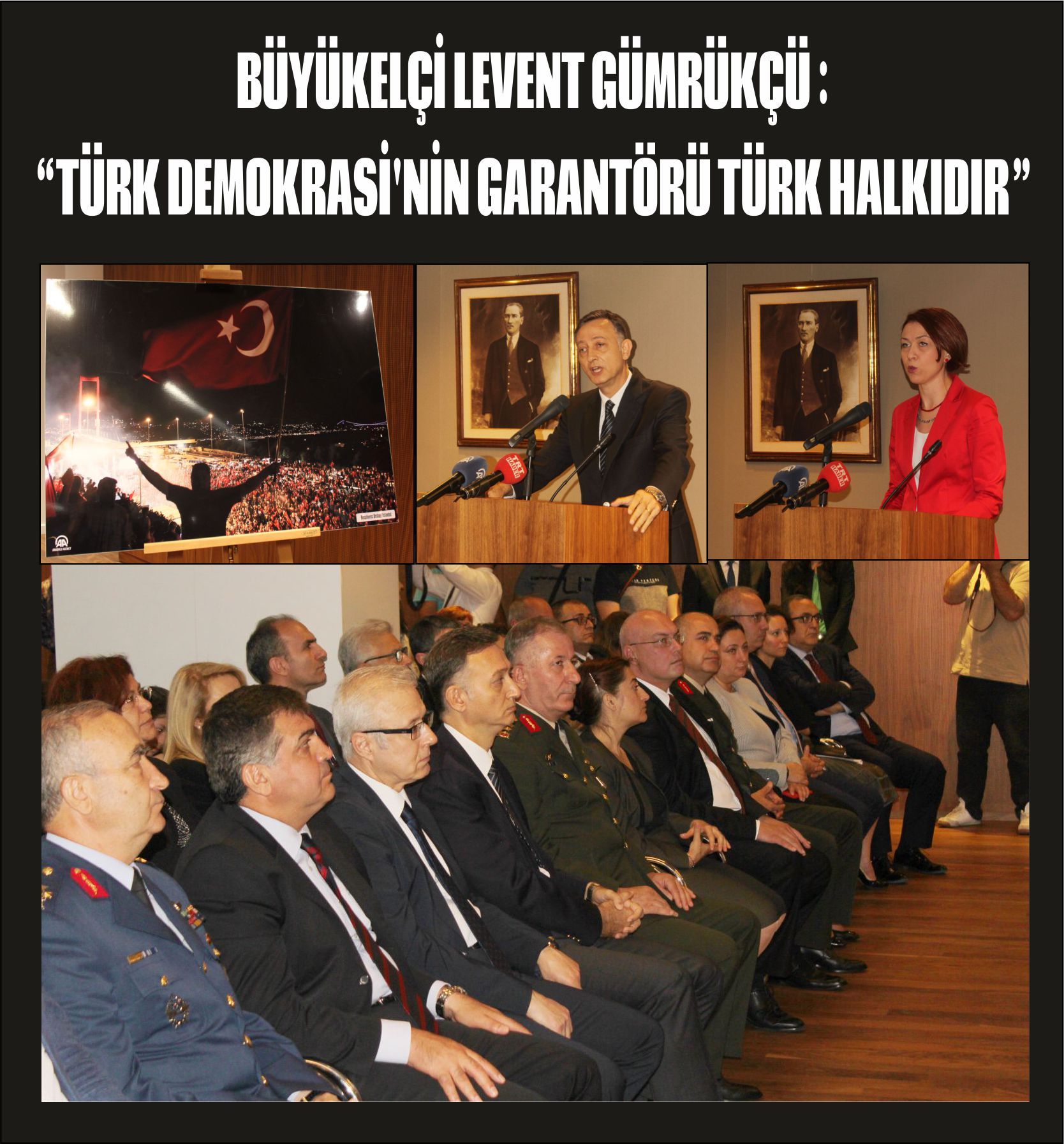 Biz bugün olduğu gibi bundan sonra da her yıl olduğu gibi ’15 Temmuz’u milli birlik ve demokrasi günü’ olarak anacak ve yine TBMM duvarında yazılı olan “Egemenlik kayıtsız şartsız Milletinindir” sözünün de olduğu gibi Türkiye’de demokrasinin garantörü olduğunu dünya ya duyuracağız.