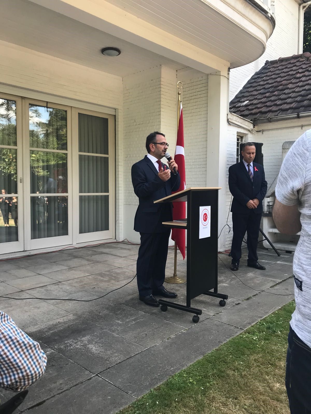 Anayasal düzenimize ve demokrasimize karşı 15 Temmuz 2016 tarihinde yapılan ve halkımızın direnişiyle akim bırakılan darbe girişiminin ikinci yıldönümü vesilesiyle FETÖ terör örgütü mensupları tarafından şehit edilen masum vatandaşlarımızı anmak üzere 15 Temmuz 2018 tarihinde saat 16.00’da T.C. Anvers Başkonsolosluğunda yerel erkan ve sivil toplum kuruluşları temsilcileriyle birlikte bir anma töreni düzenlendi.