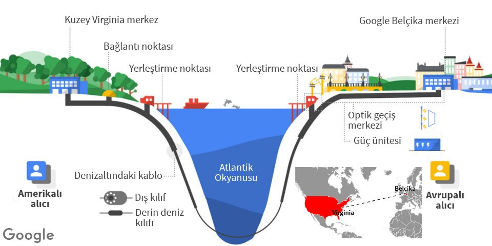 ~~Dünyanın en büyük arama motoru olan Google, salı günü yaptığı açıklamada Atlantik Okyanusu’nun altından geçerek ABD ve Belçika’yı birbirine bağlayacak olan Dunant isimli bir kablo ağı projesini hayata geçireceğini duyurdu. Business Insider’da yer alan habere göre Proje’nin 2020 yılında kullanıma açılması planlanıyor.