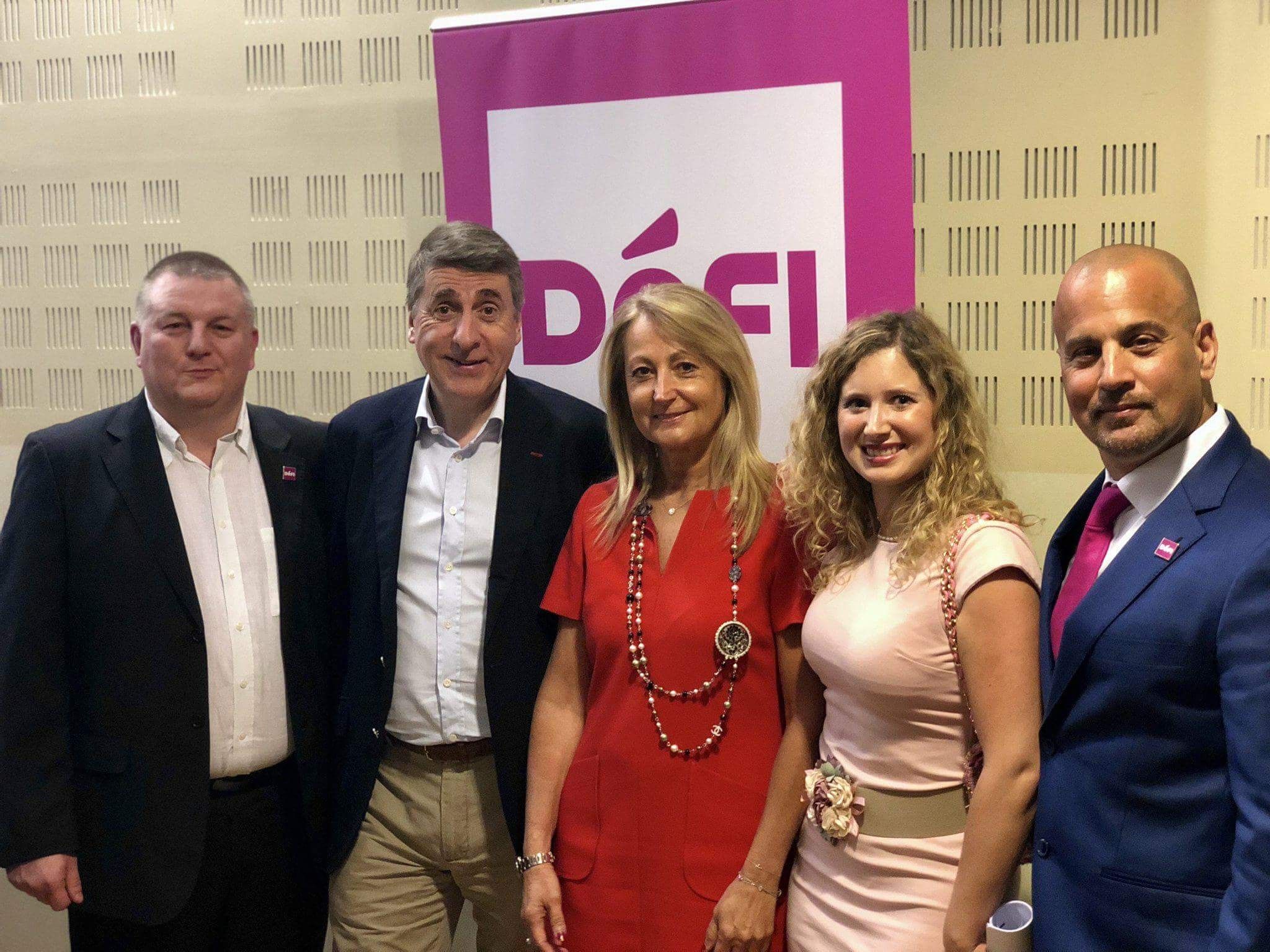 Tümbaş, DEFI partisi genel başkani Olivier Maingain ve Waterloo liste başı Fiorella IEZZI ile birlikte basına görüntü verdi.
