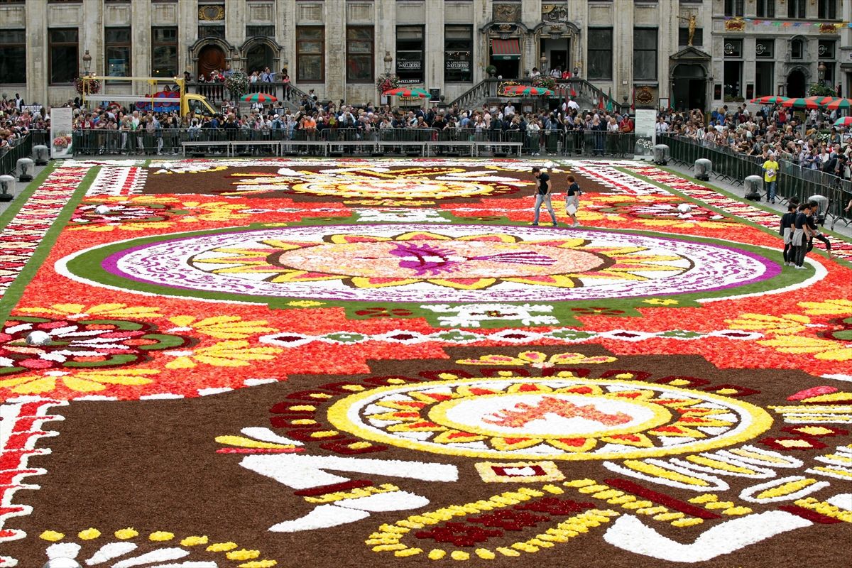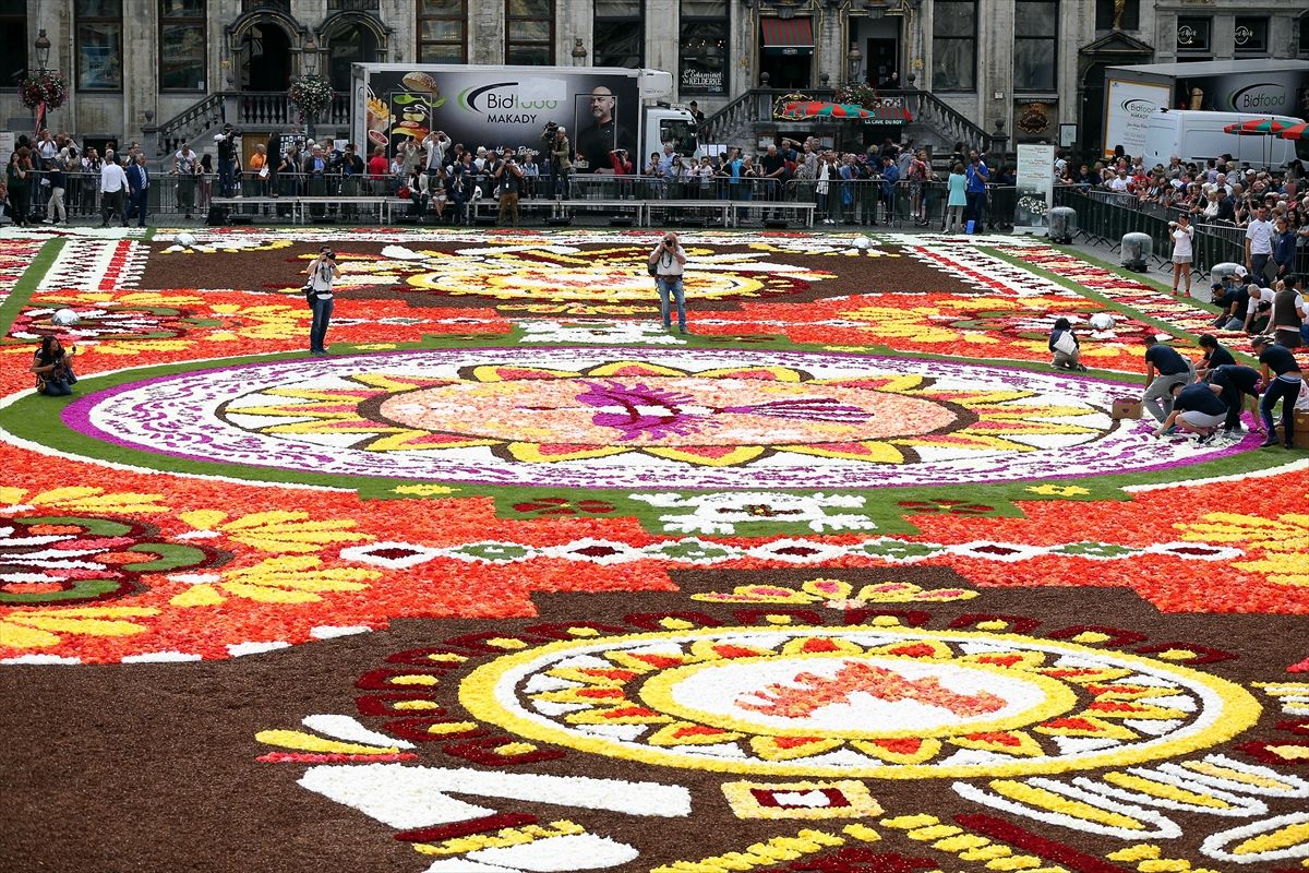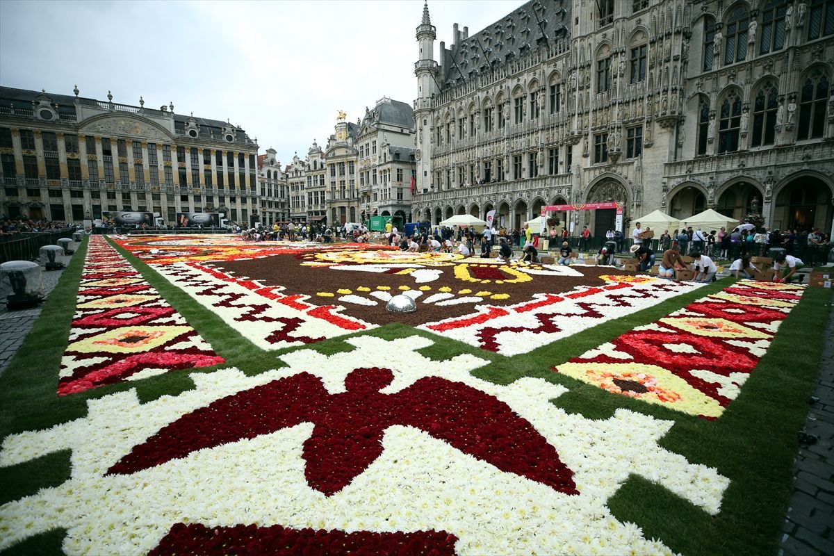 Brüksel'in tarihi meydanı iki yıl önce Japon motifleri kullanılan çiçek halıyı sergilemiş, 2014'te ise Türklerin, Belçika'ya göçünün 50'nci yılı anısına Türk halısına bezenmişti.