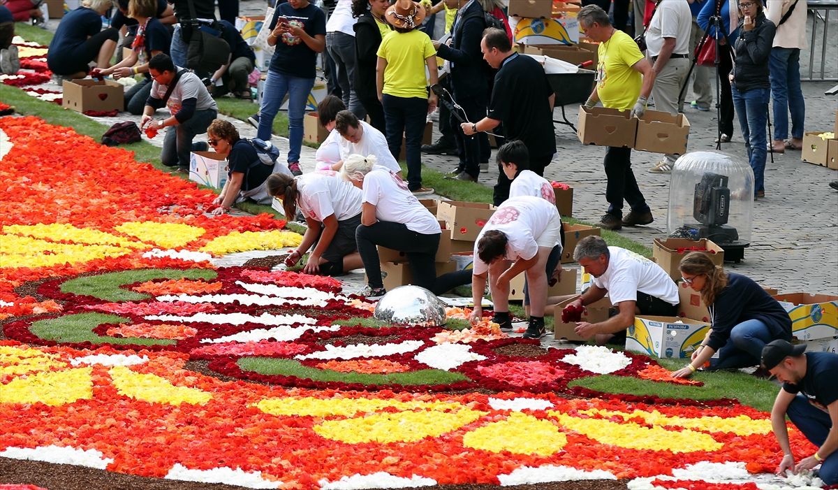 16-19 Ağustos tarihlerinde görülebilecek dev halı için dalya ve meşhur Belçika begonyalarından oluşan 500 binden fazla çiçek kullanıldı.