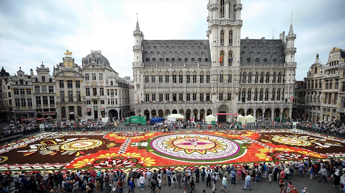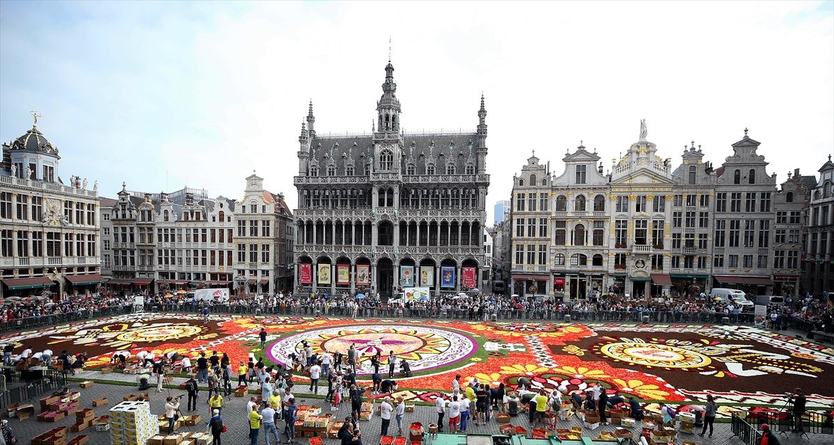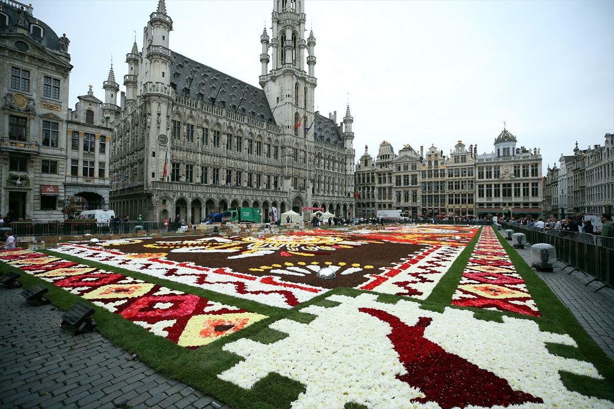 ~~Grande Place meydanı Latin motifli çiçek halıya bezendi