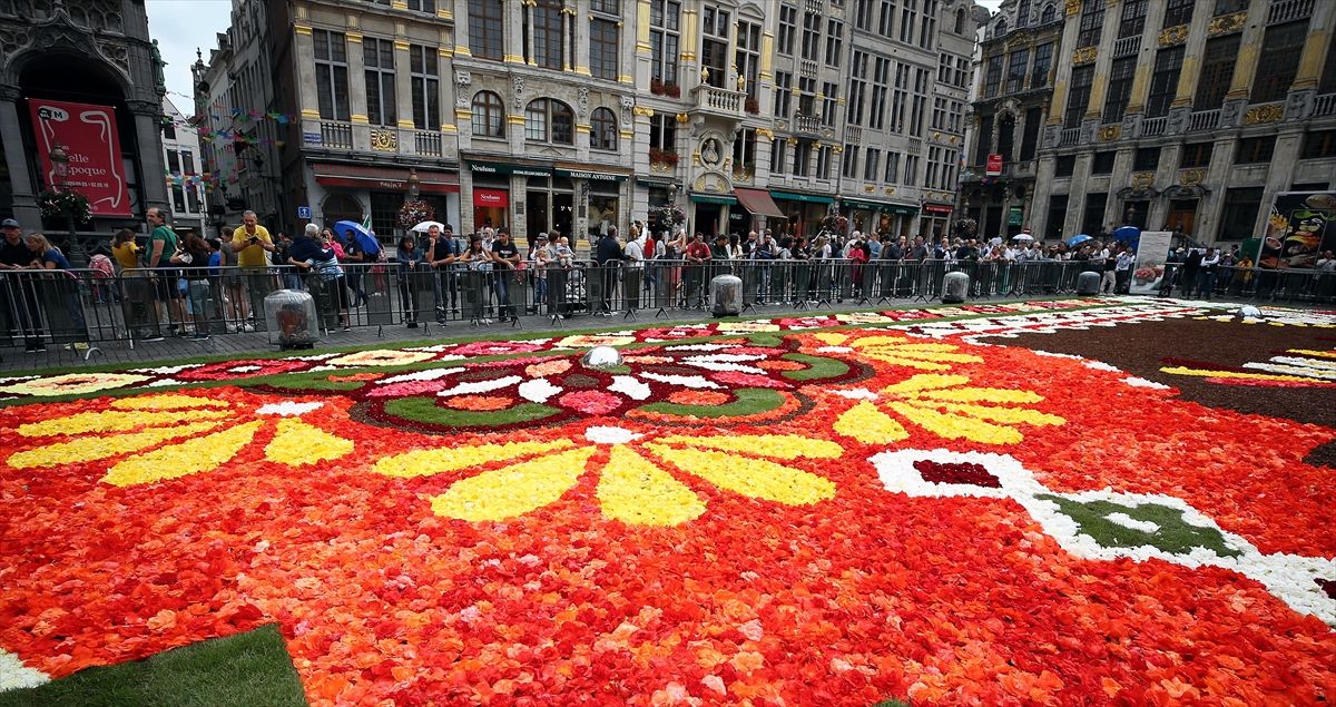 - Brüksel'in ünlü Grande Place meydanı, bu yıl ilk defa Latin motifleriyle bezenmiş dev çiçek halıya ev sahipliği yapıyor.