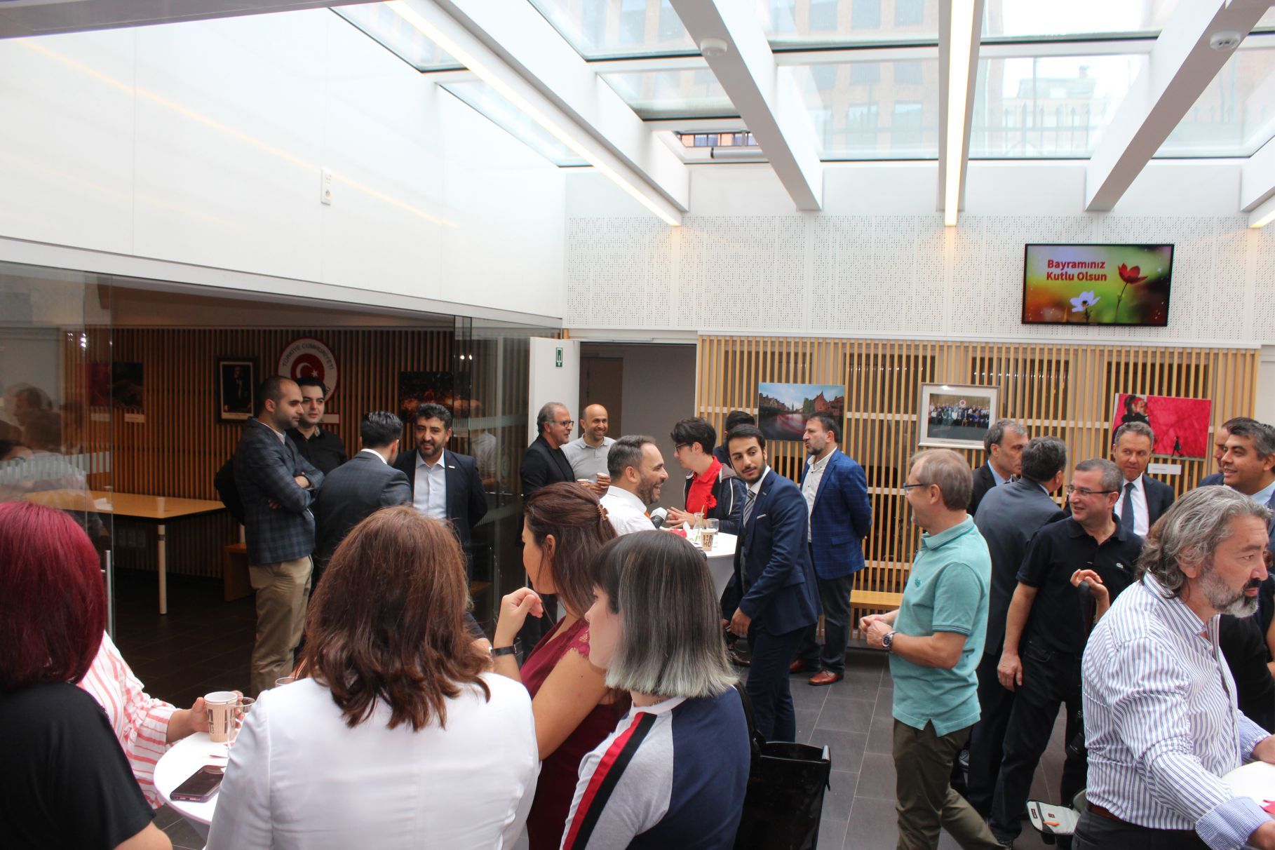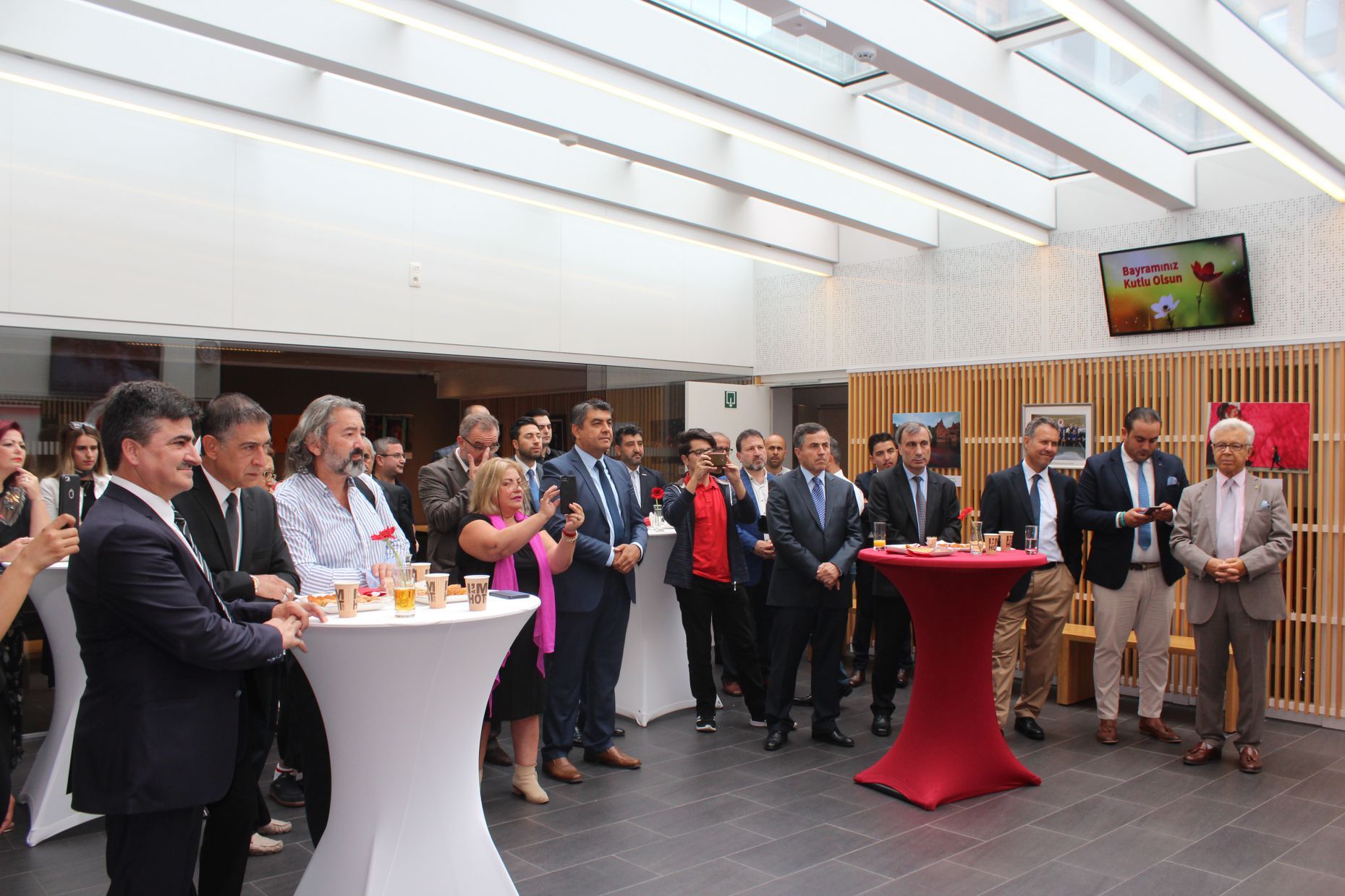 Kutlamaya T.C. Brüksel Büyükelçisi Levent Gümrükçü, Başkonsolosluk çalışanları, Schaerbeek belediye başkan yardımcısı Sadık Köksal, Belçika Başbakanı Danışmanı ve Evere belediyesi meclis üyesi Belma Tek, Anderlecht belediye meclis üyesi Mustafa Ulusoy, Belçika'da siyaset yapan siyasetçiler, Sivil toplum kuruluş temsilcileri ve akademi çevresinden üniversite de okuyan öğrenciler katıldı.