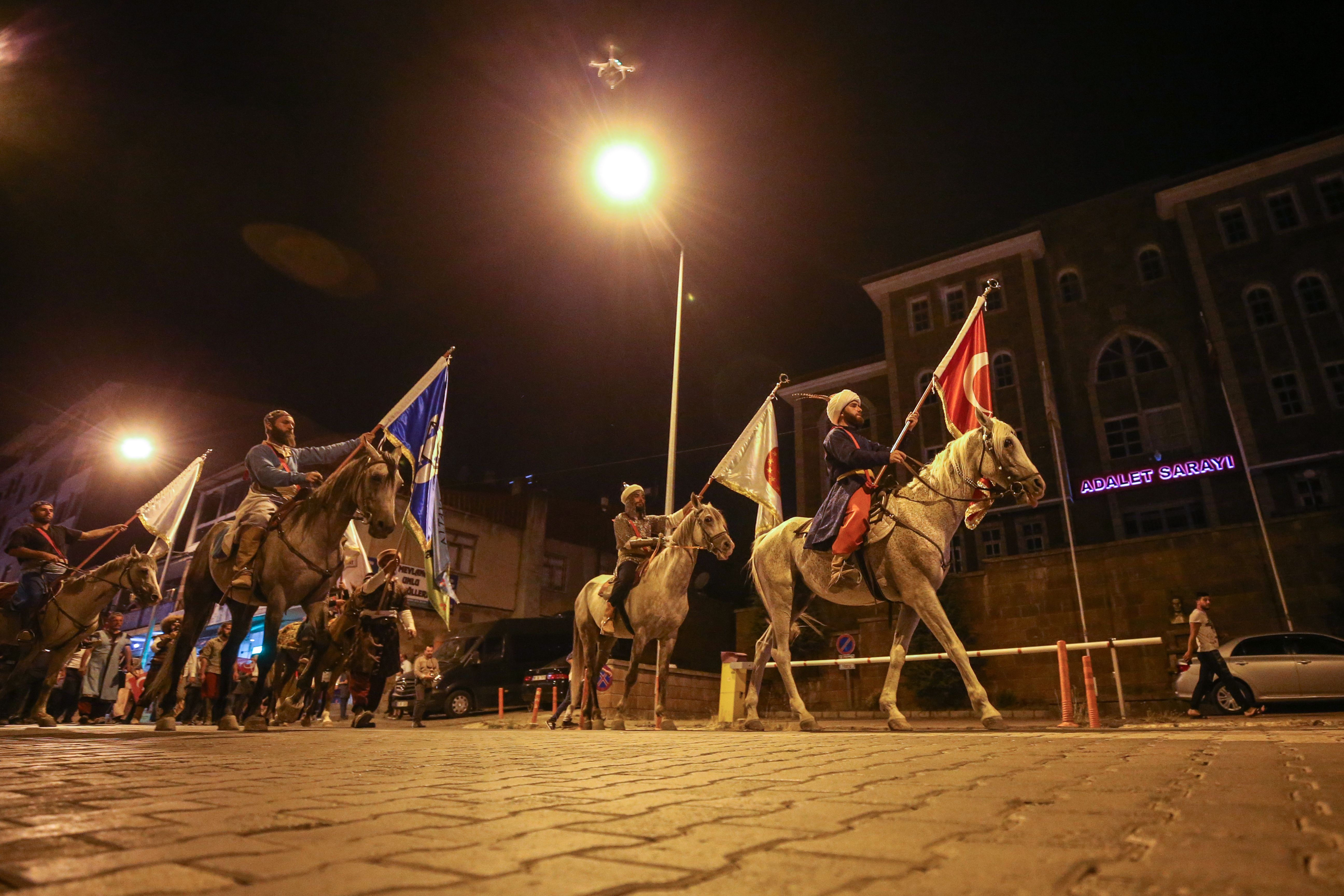 Bitlis'in Ahlat ilçesinde "Malazgirt Zaferi'nin 947. yıl dönümü" etkinlikleri kapsamında "Malazgirt şehitleri" anısına fener alayı gerçekleştirildi.
