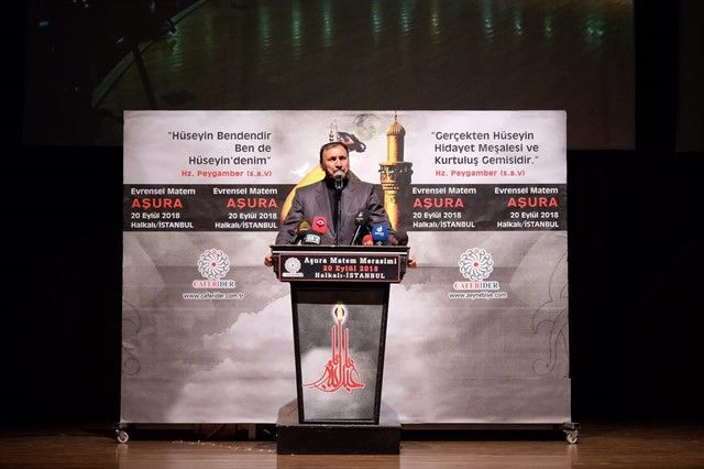 Ardından Türkiye Caferi Lideri Selahattin Özgündüz konuştu. Konuşmasına dualarla başlayan Özgündüz, Hz. Hüseyin ve beraberindekilerin Kerbala'da şehit edildiğini anlatarak, Allah bize gerçek İslam'ı, Kuran'ın İslamı'nı yaşamayı nasip etsin. Allah bize Hüseyin'e ağlamanın yanı sıra Hüseyin'i anlamayı nasip etsin" dedi.Tören, Zeynebiye Gençlik Tiyatrosu'nun Masumluğun galibiyeti" adlı oyunuyla sona erdi. Demirtekin'in yaptığı Kerbela Şehitlerinin 1376. yıldönümü anma töreni, Ehli Beyt alimlerinden Ş.Ehed Talan'ın Kur'an-ı Kerim tilaveti ile başladı.