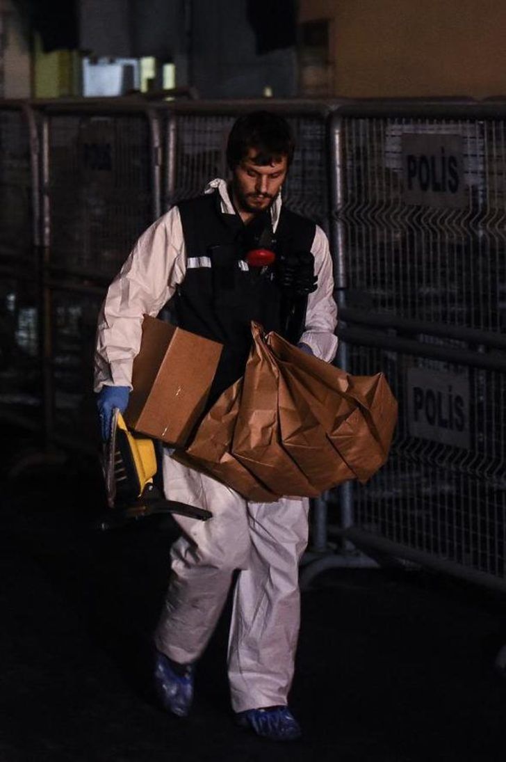 ~~Pazar günü yapılan aramaların ardından dün Suudi Arabistan Başkonsolosu'nun kaldığı konutta saat 16.35 sıralarında başlatılan çalışmalar gece 01.40 sıralarında sona ermişti. Konutta yapılan aramalar devam ederken, polis ekipleri saat 00:00 sıralarında Başkonsolosluk binasına tekrar geçerek aramalara başlamıştı. Yaklaşık 5 saat süren çalışmaların ardından, ekipler konsolosluk binasında topladıkları delilleri binanın arka girişinde bulunan kapısından çıkararak olay yeri inceleme ekiplerine ait araca koymaya başladı.