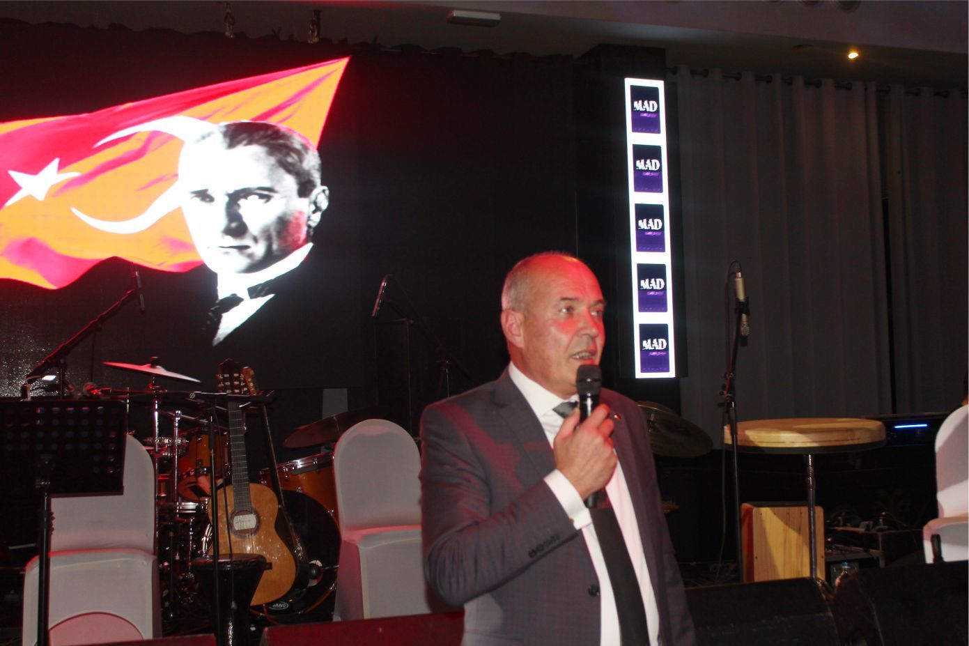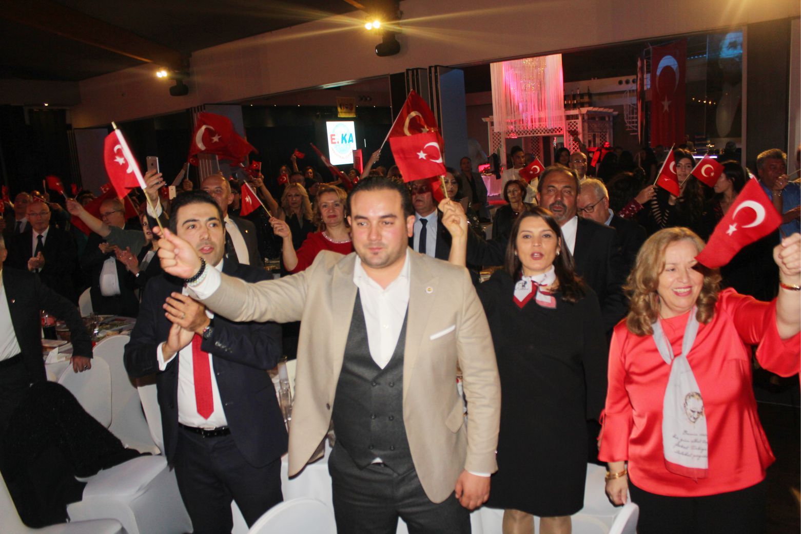 Bu programa maddi ve manevi katkıları olanlara çok teşekkür ediyorum. Özellikle bu salonu bizlere tahsis eden İşadamı sayın Mahmut Korkmazer başta olmak üzere, yönetim kurulu üyelerimize sponsorlarımıza ve değerli sanatçılarımız katılımlarınızdan dolayı da siz değerli konuklarımıza çok teşekkür ediyorum. Bu vesileyle hepinizin ’29 Ekim Cumhuriyet Bayramı kutlu olsun. Hayırlı eğlenceler, hayırlı bayramlar” dedi.