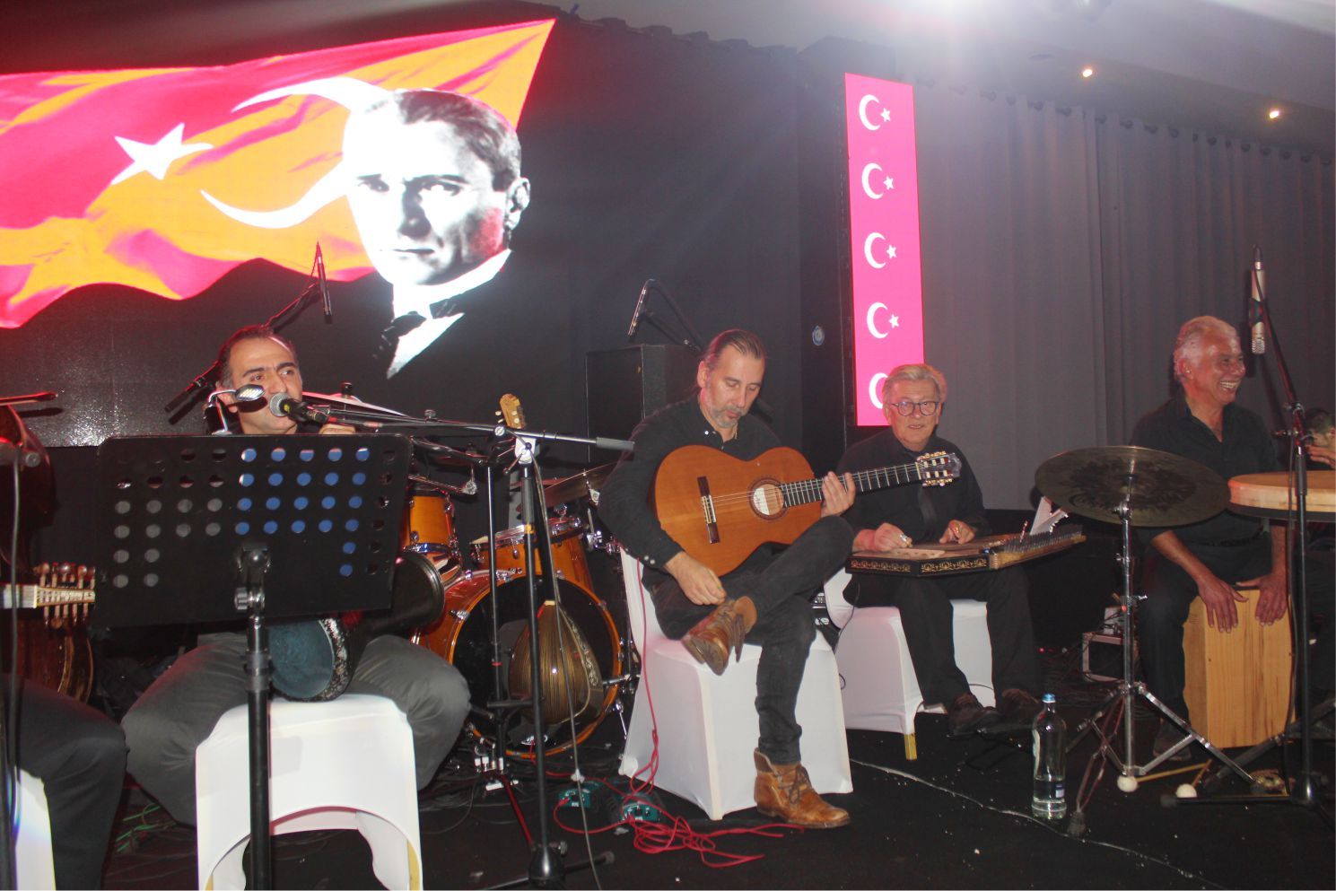 Ülkü Yıldırım ve Hüseyin Eryılmaz’ın okudukları gençliğe Hitabe ve şiirlerle devam eden programda konuklar ise Cumhuriyet ile ilgili düşüncelerini ifade ettiler. Program ’Grup Hey Hey’in sunduğu Türk sanat müziği ve Atatürk’ün sevdiği şarkılarla devam etti.