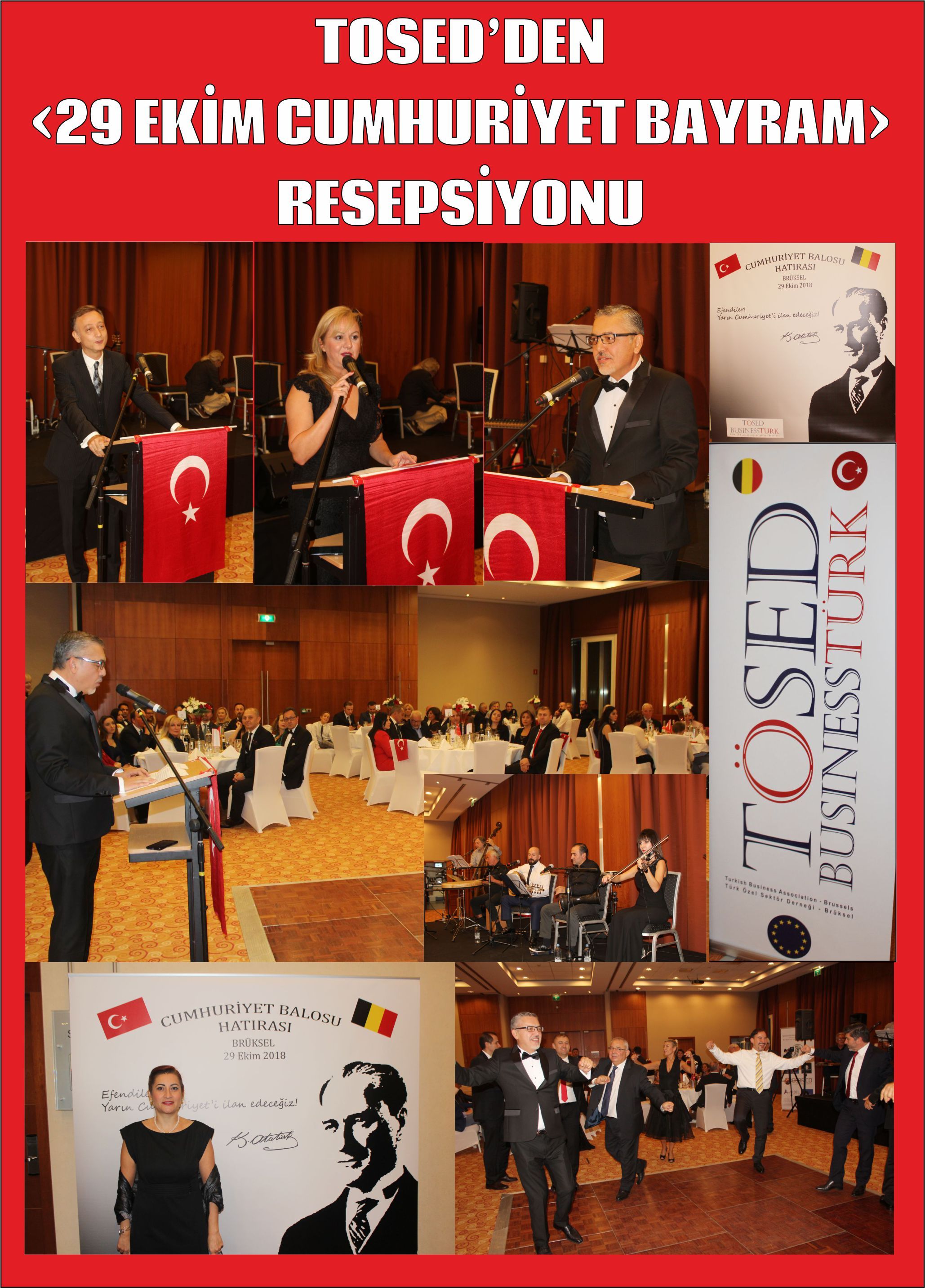 Avrupa ve Belçika’nın başkenti Brüksel’de de bu anlamda resmi ve sivil toplum kuruluşlarının kutlamaları olmakta. Belçika’da faaliyet gösteren ve kısa adı TÖSED olan ‘Türk Özel Sektör Derneği’ de Cumhuriyetimizin ilan edilişinin 95 yıl dönümünü nedeniyle, işadamlarına yönelik bir resepsiyon vererek, bir kutlama gerçekleştirdi.
