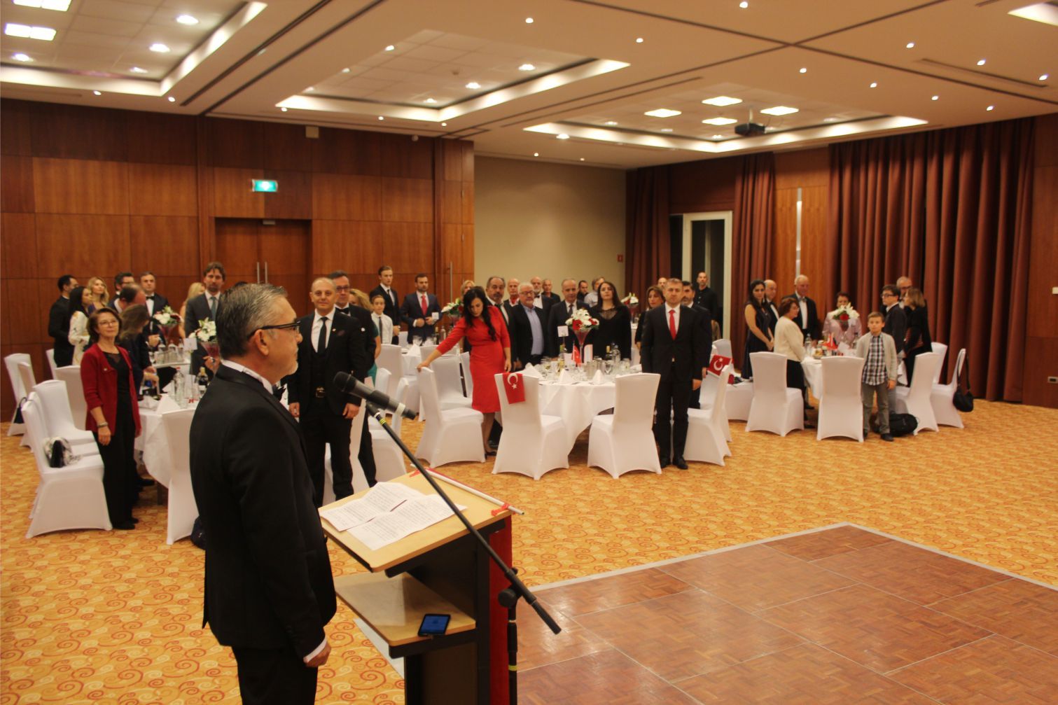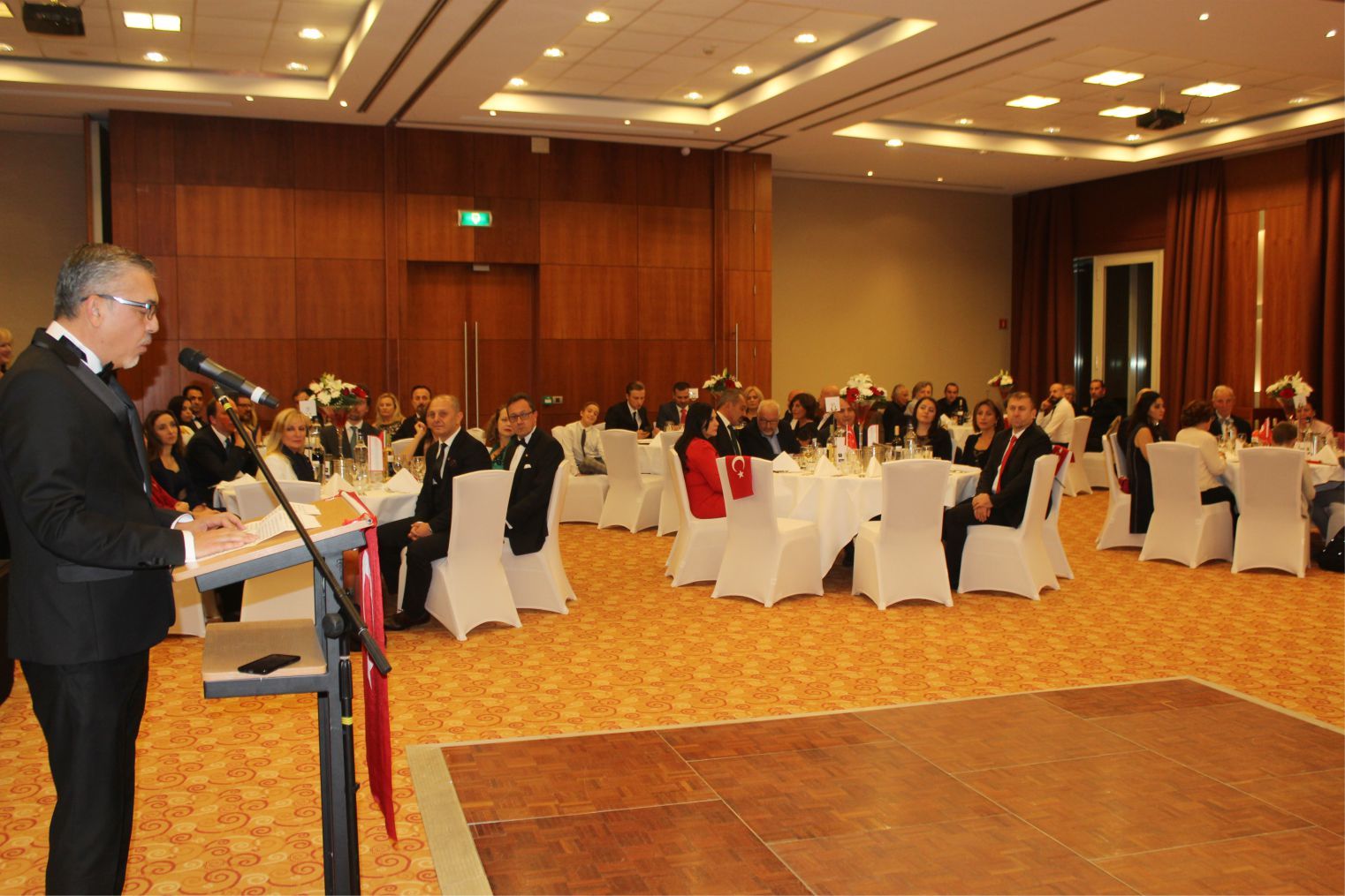 T.C. Brüksel Büyükelçisi Levent Gümrükçü ise yaptığı selamlama konuşmasında, “Öncelikle hepinizin Cumhuriyet bayramını tebrik ediyorum. Bu Cumhuriyet bayramında sizlerle birarada olmaktan duyduğum memnuniyeti ifade etmek istiyorum. Burada eşimle birlikte sizlerle birarada olmak bizler için, onur ve şereftir.