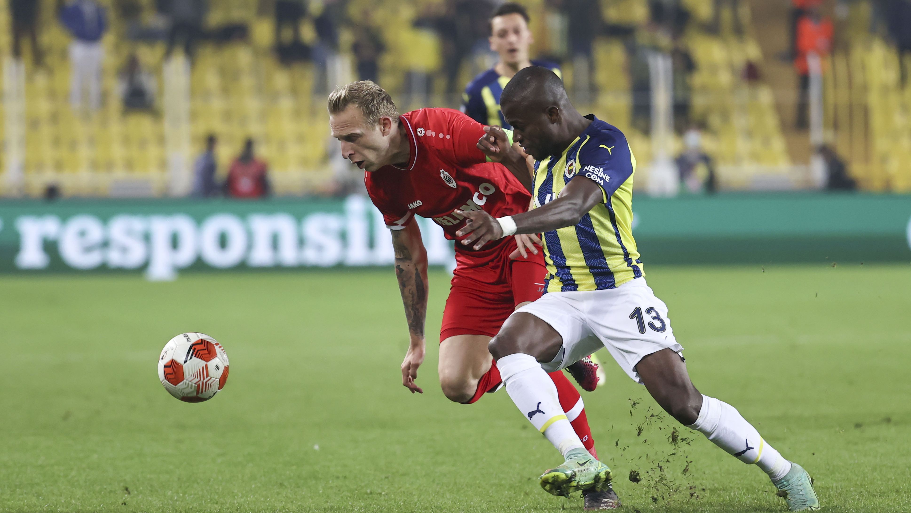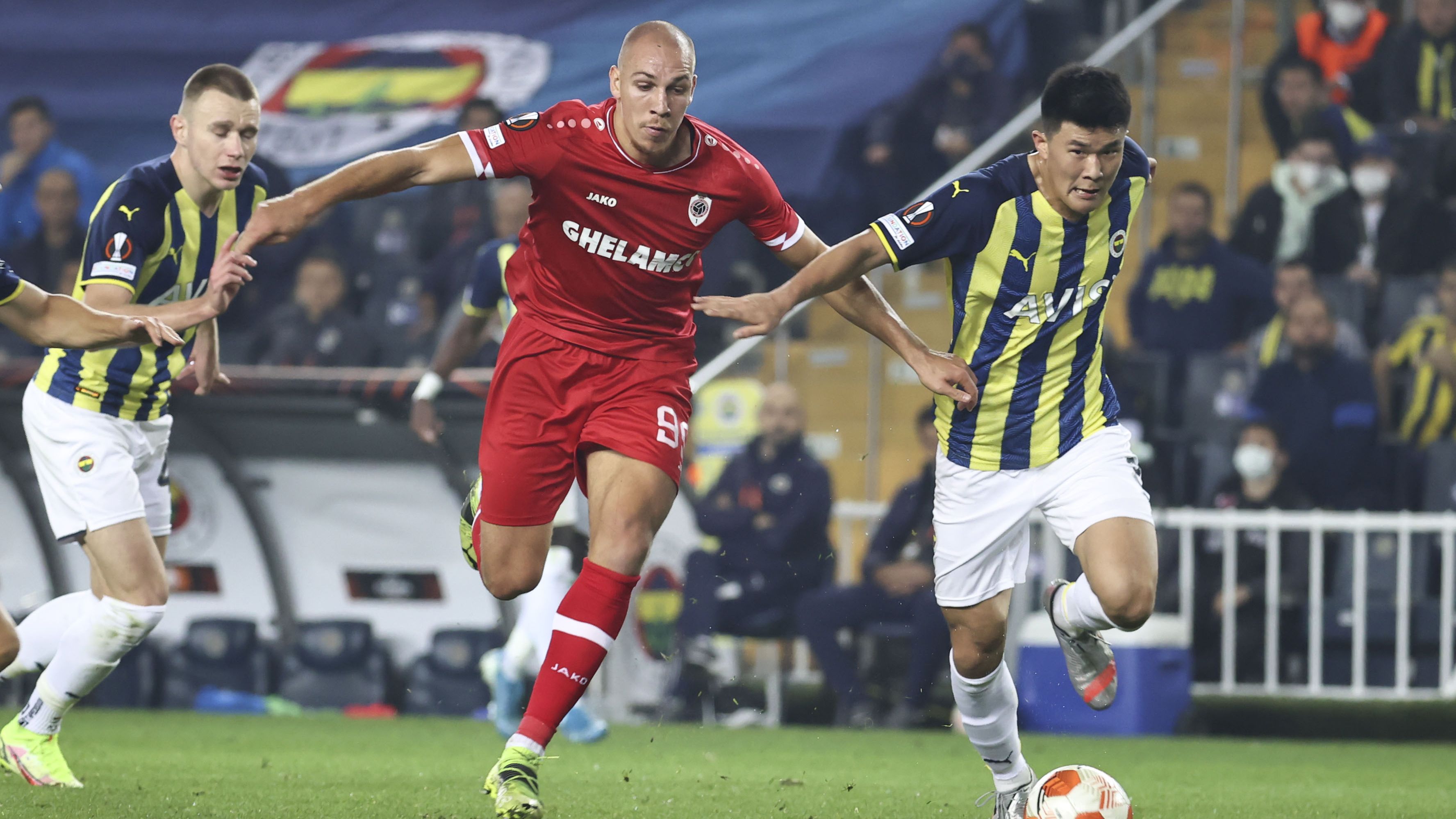 ~UEFA Avrupa Ligi D Grubu 3. haftasında Fenerbahçe ile Belçika ekibi Royal Antwerp arasında oynanan karşılaşmanın ilk yarısı, sarı-lacivertlilerin 2-1 üstünlüğüyle sona erdi.