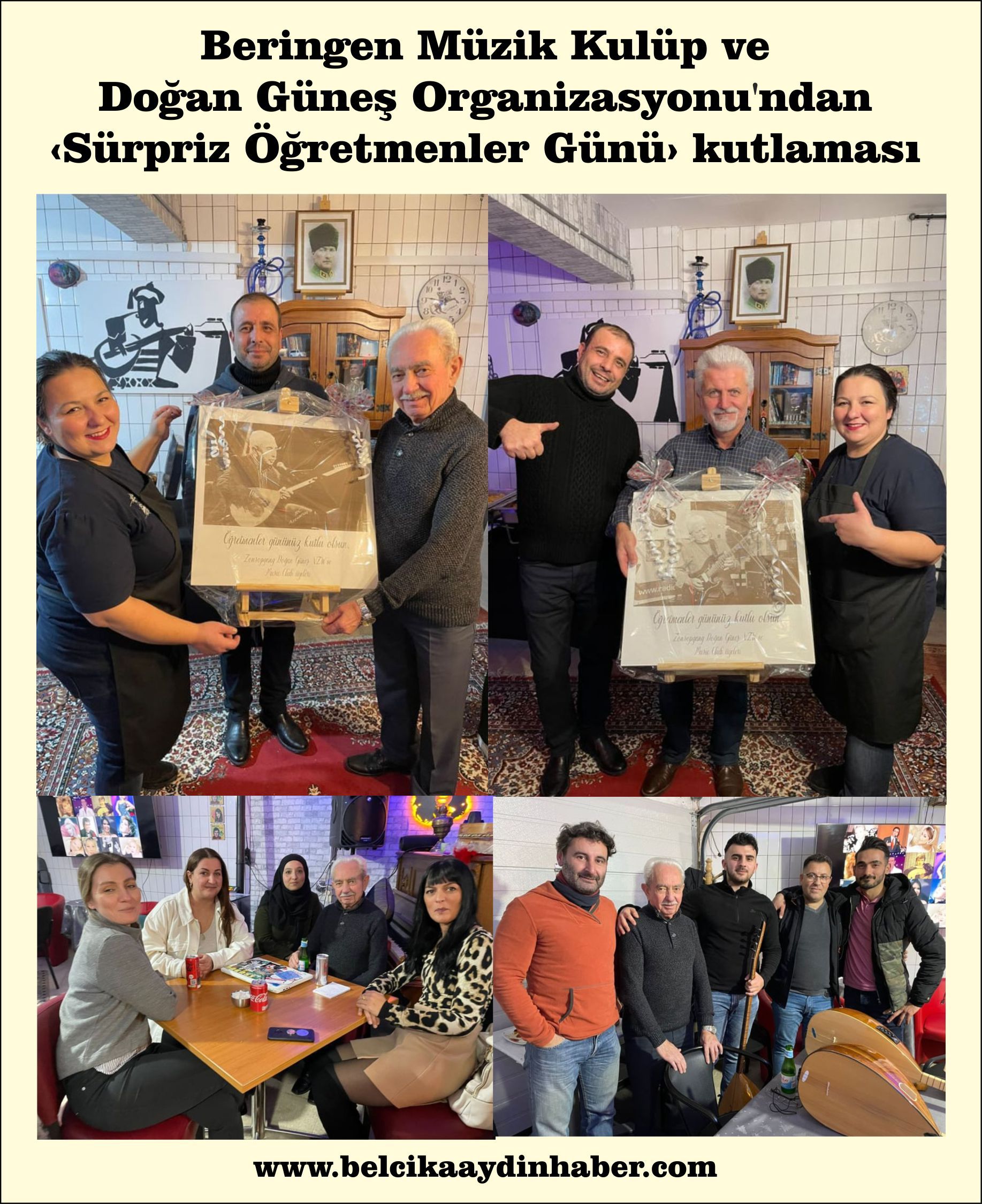 Beringen Müzik Kulüp Kurucu Başkanı İsmail Erdoğdu ve Doğan Güneş Organizasyon Başkanı Neşe Doğan'ın ortak organizasyonuyla gerçekleşen "¹24 Kasım Öğretmenler Günü"º sürpriz kutlaması 25 Kasım'da 'Doğan Güneş Salonu'nda öğretmenler ve kursiyerlerin katılımıyla gerçekleşti.