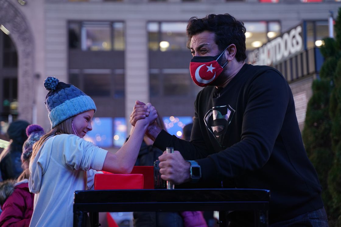 New York'ta Amerikalılara meydan okuyan ve kendini yenecek olanlara para ödülü teklif eden bilek güreşçisi ve sosyal medya fenomeni Volkan Kırımlıoğlu, karşısına çıkan tüm rakiplerini yendi.