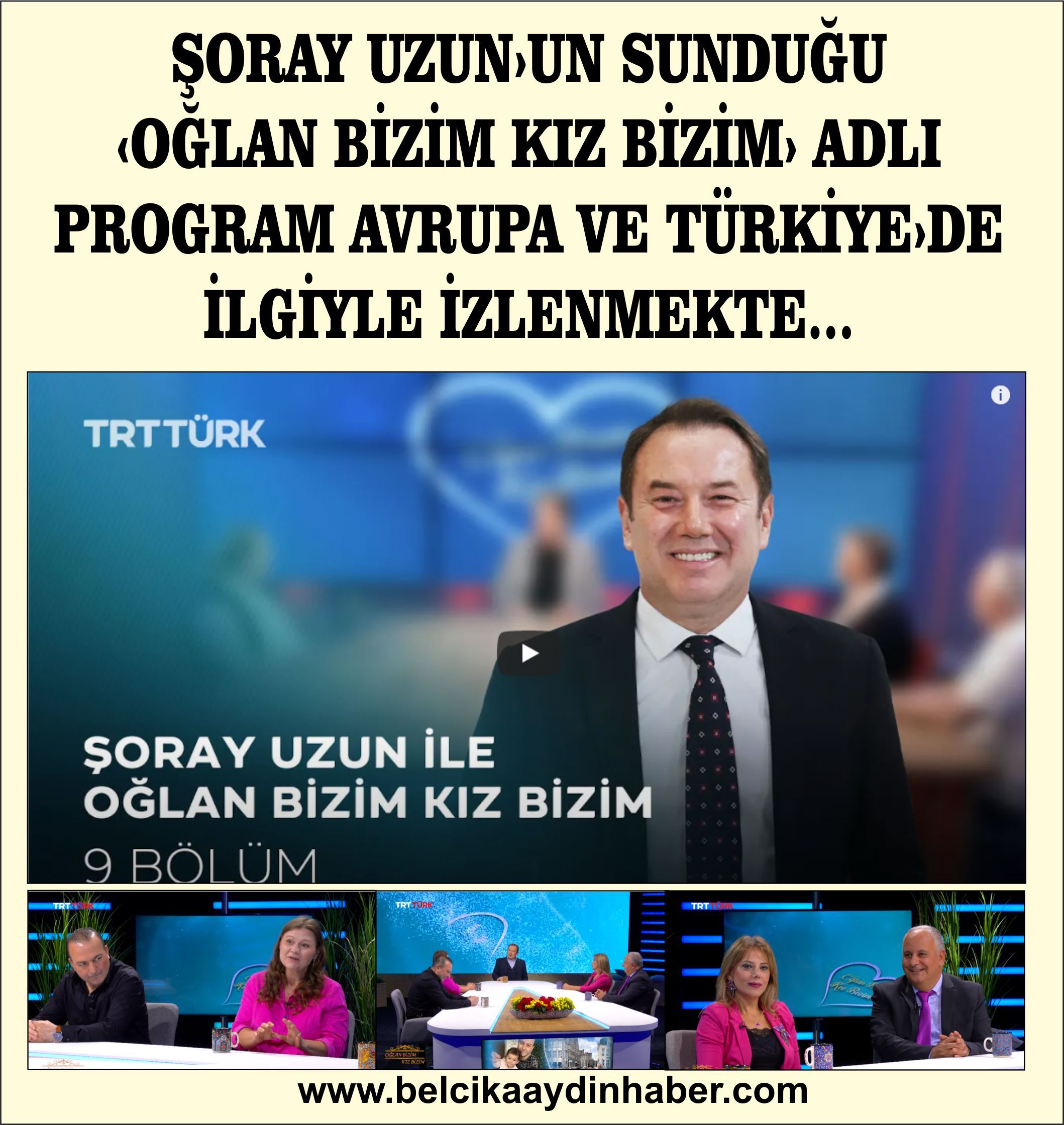 Özellikle sempatik ve esprili sunumuyla izleyenlerinin gönlünde taht kuran ‘Şoray Uzun’un hazırlayıp sunduğu ve her Pazar TRT Türk’te saat Avrupa saati: 20:00’de yayınlanan ‘Oğlan bizim Kız bizim’ programı ilgiyle izlenmekte.