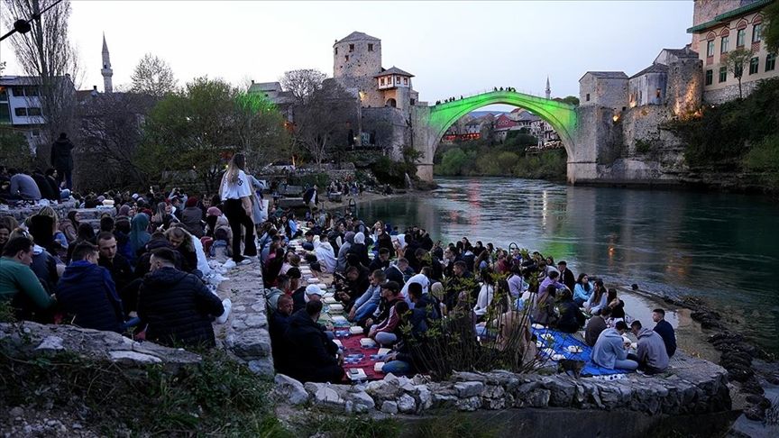 Bosna Hersek İslam Birliğince, "Ramazan Günleri" kapsamında organize edilen ve 1300 kişinin katıldığı iftar, Mostar Köprüsü'nün altından geçen Neretva Nehri kıyısındaki platoda yapıldı.
