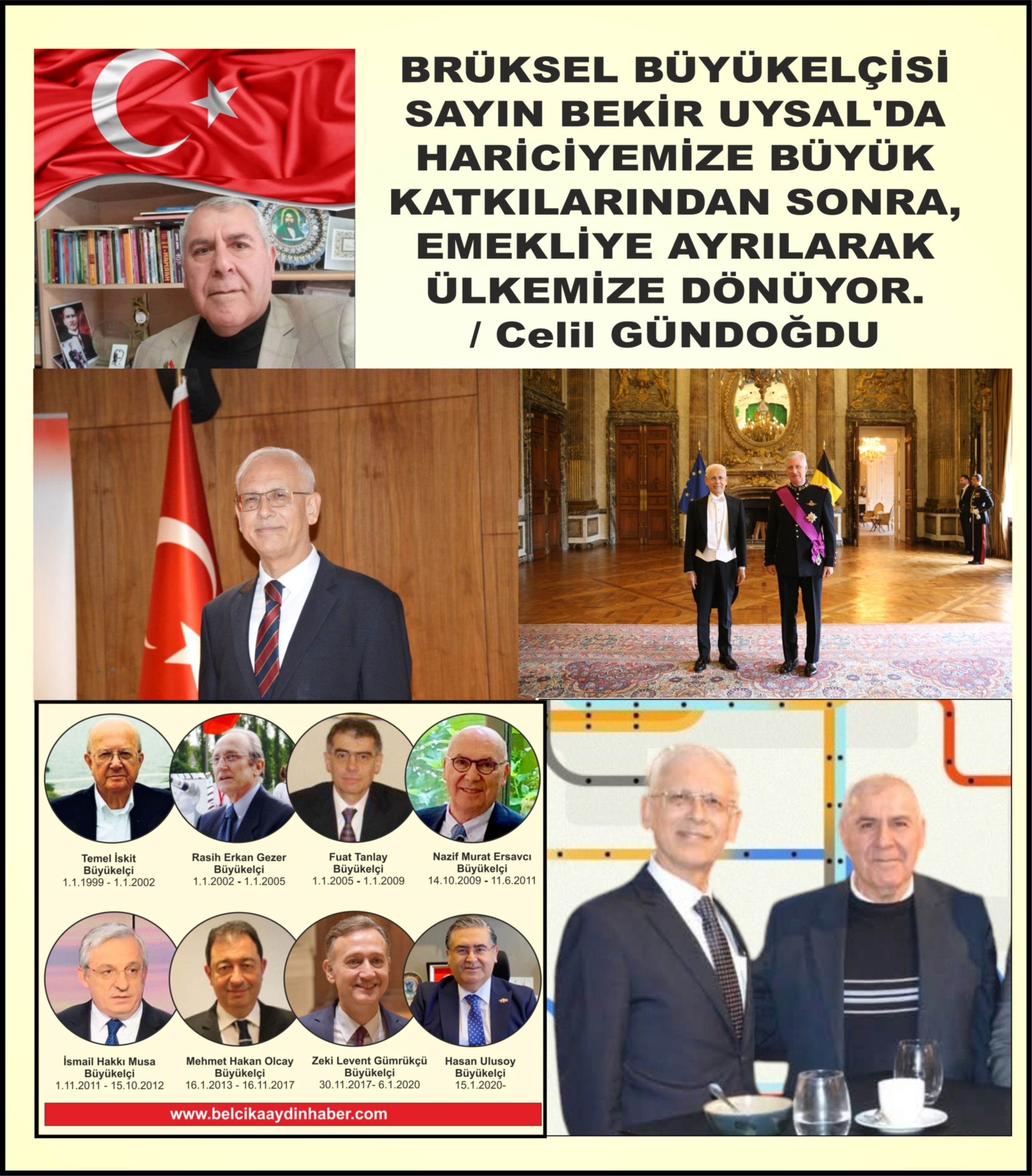Hariciyemizin tecrübeli şahsiyetlerinden olan 40 yıla yakın kamu diplomasisinde hizmet veren T.C. Brüksel Büyükelçisi Sayın Bekir Uysal’da hizmet süresini doldurarak, yaklaşık 3 yıla yakındır hizmet verdiği Brüksel’den birkaç güne kadar ayrılacaktır. Kendisine yeni yaşamında sağlıklı ve huzurlu günler diliyoruz.