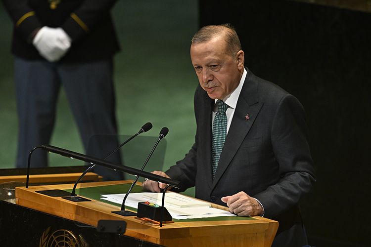 Cumhurbaşkanı Erdoğan, Birleşmiş Milletler (BM) Genel Kurul Salonu'nda BM'nin 80. Genel Kurulu görüşmelerinde katılımcılara hitap etti.