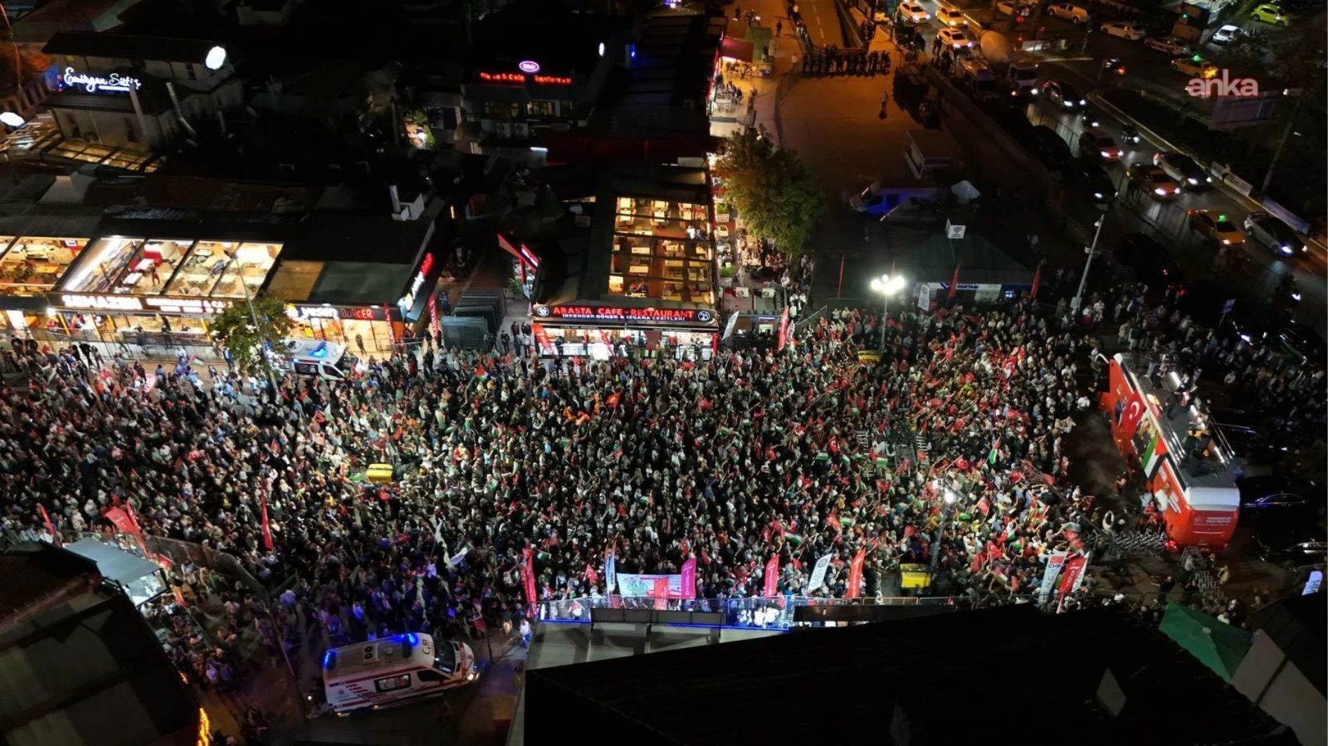 - Hepinize çok teşekkür ediyorum. Bilhassa şunun için teşekkür ediyorum. 'Ben ne yapabilirim?' diyorsunuz ya. Ben de size diyorum ya: Nereye çağrılırsanız oraya gidin. Sokaksa sokak, meydansa meydan, eylemse eylem. Bugün bugün başka bir şey konuşmadan burada, bu meydanda Filistin bayrakları elimizde toplandık. Çünkü gün Filistin'e sahip çıkma günüdür.