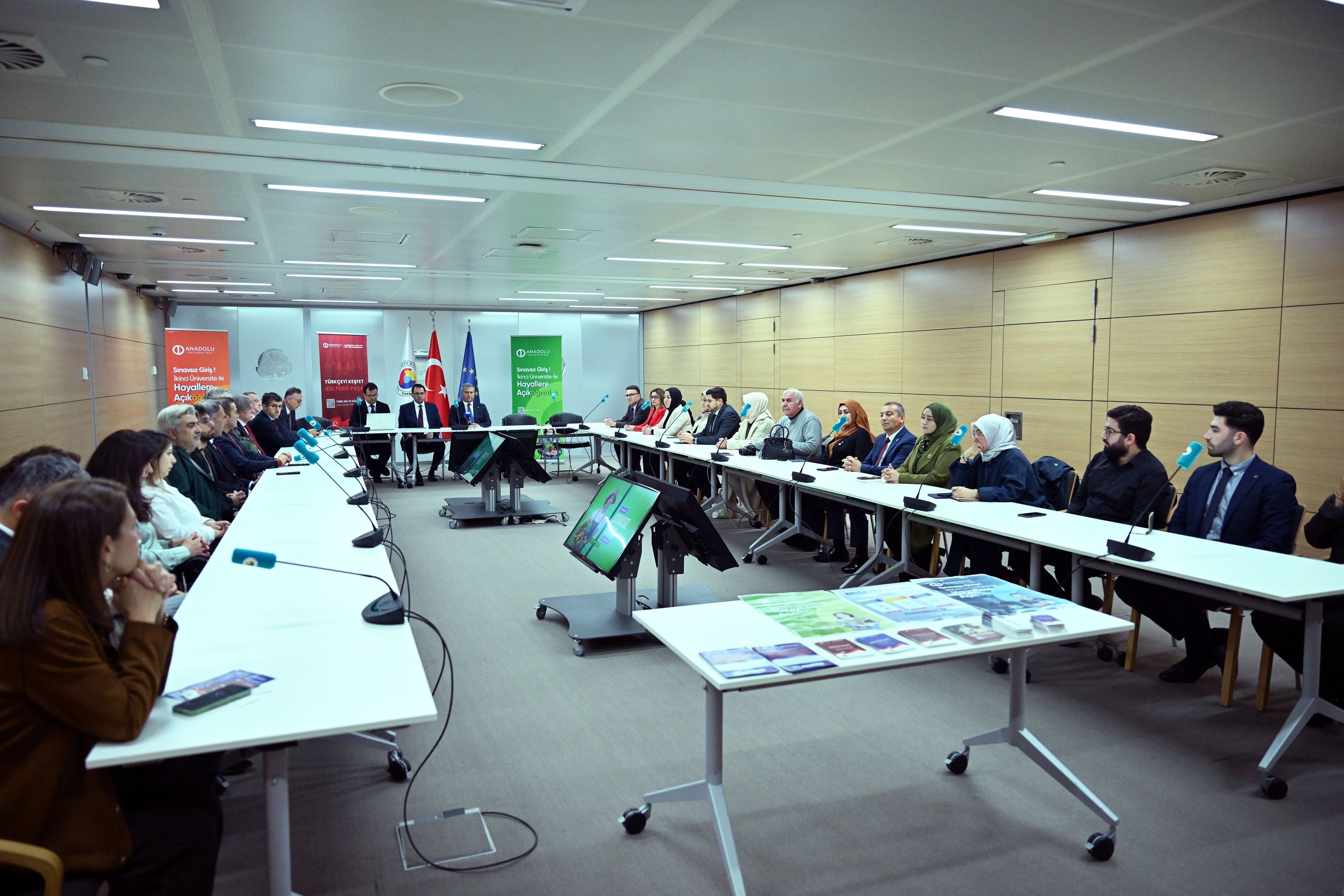 Anadolu Üniversitesi Rektörü Prof. Dr. Adıgüzel, Brüksel'deki TOBB ofisinde Türkiye'nin Brüksel Büyükelçisi Görkem Barış Tantekin'in ev sahipliğinde düzenlenen etkinlikte, bu yıl başlatılan Türk Dili ve Kültürü programını tanıttı.