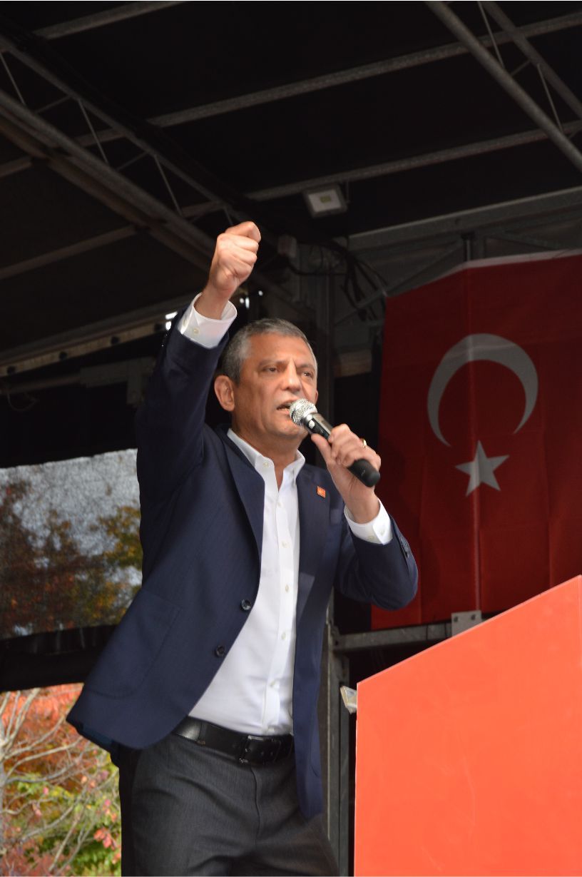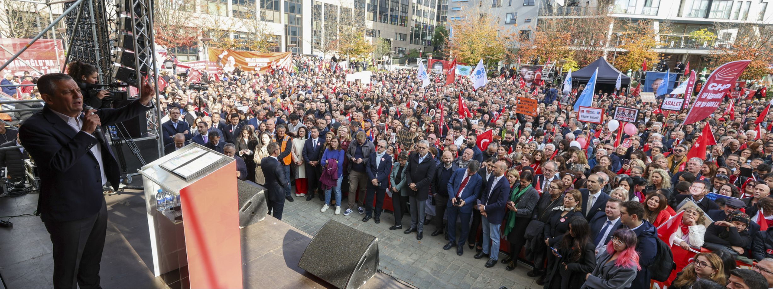 Ana Muhalefet Lideri ve CHP Genel Başkanı Özgür Özel 4 bini aşkın Avrupalı Türk’ün yer aldığı mitingde, Avrupalı Türklere yapacakları hizmetlerle ilgili olarak, politikalarını anlattı.