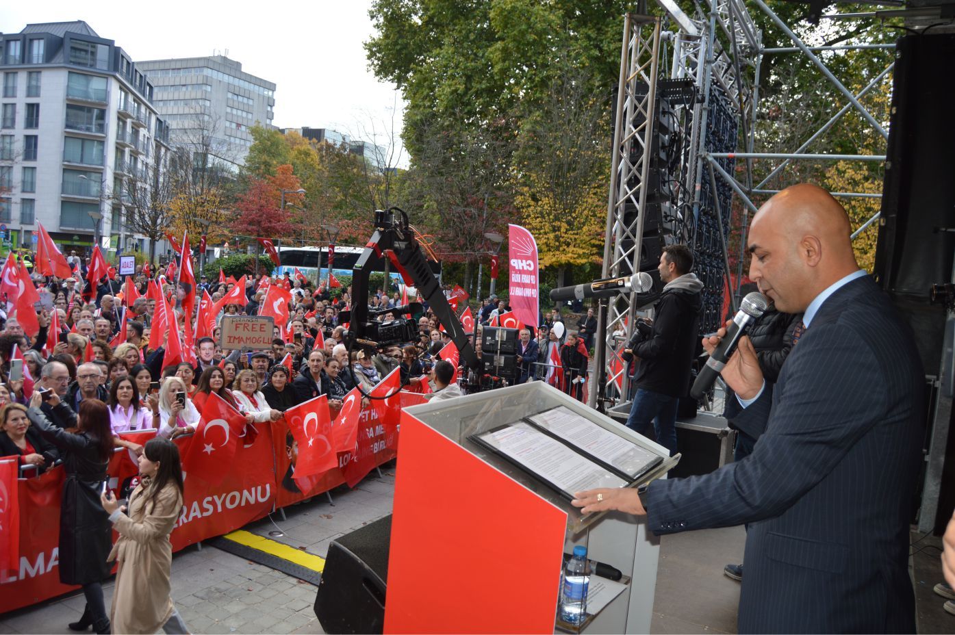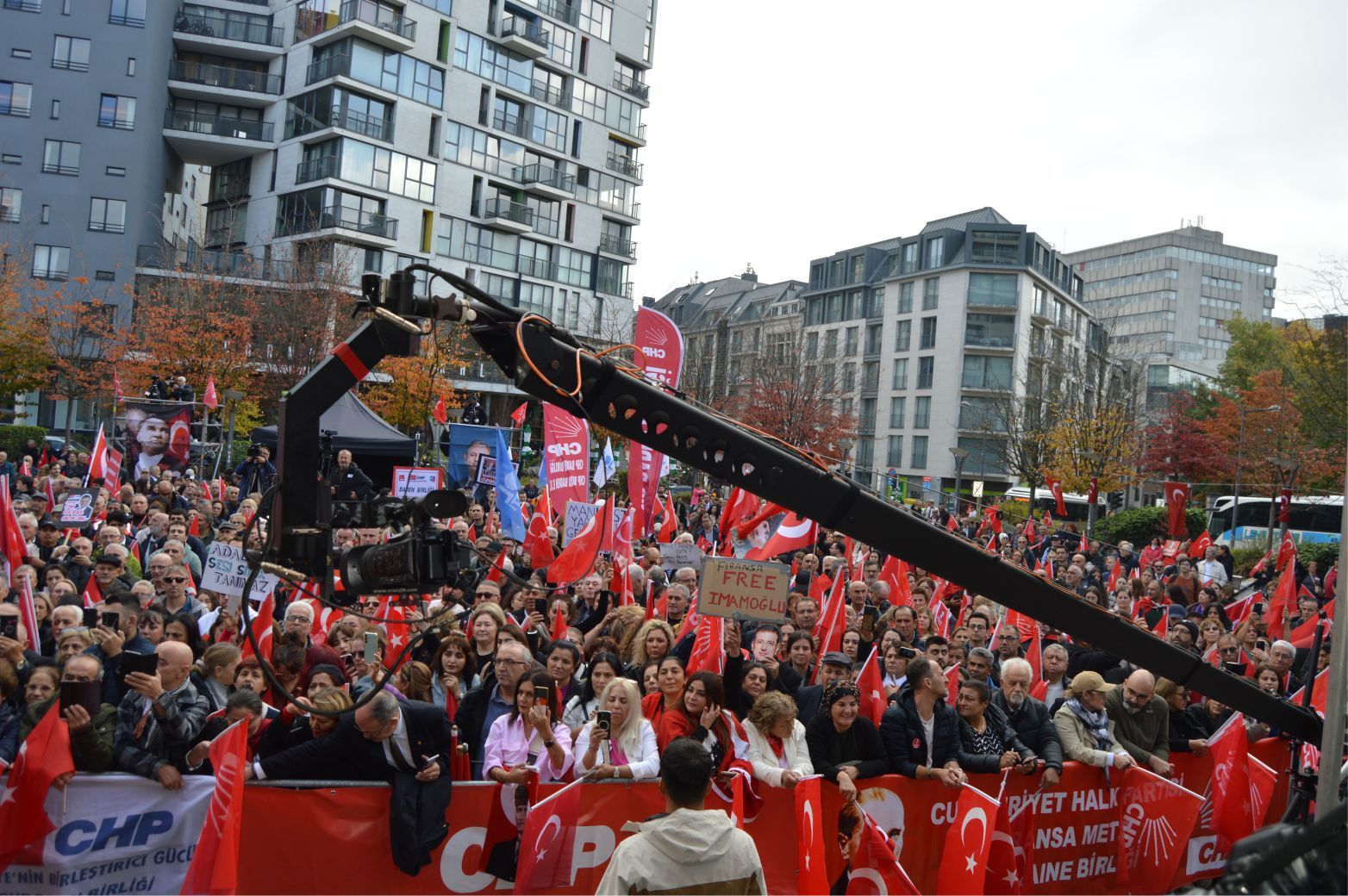 CHP, görevinden uzaklaştırılan İstanbul Büyükşehir Belediye Başkanı Ekrem İmamoğlu'nun tutuklanmasının ardından başlattığı "Millet İradesine Sahip Çıkıyor" mitinglerini ilk kez yurt dışında düzenledi.