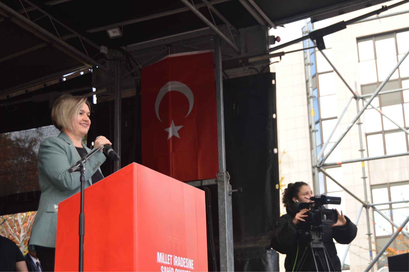 Avrupalı yetkililerinde hazır bulunduğu miting’de ‘Sizler Avrupalı Türkler’ olarak ülkemizin ve halkımızın temsilcilerisiniz” dedi.