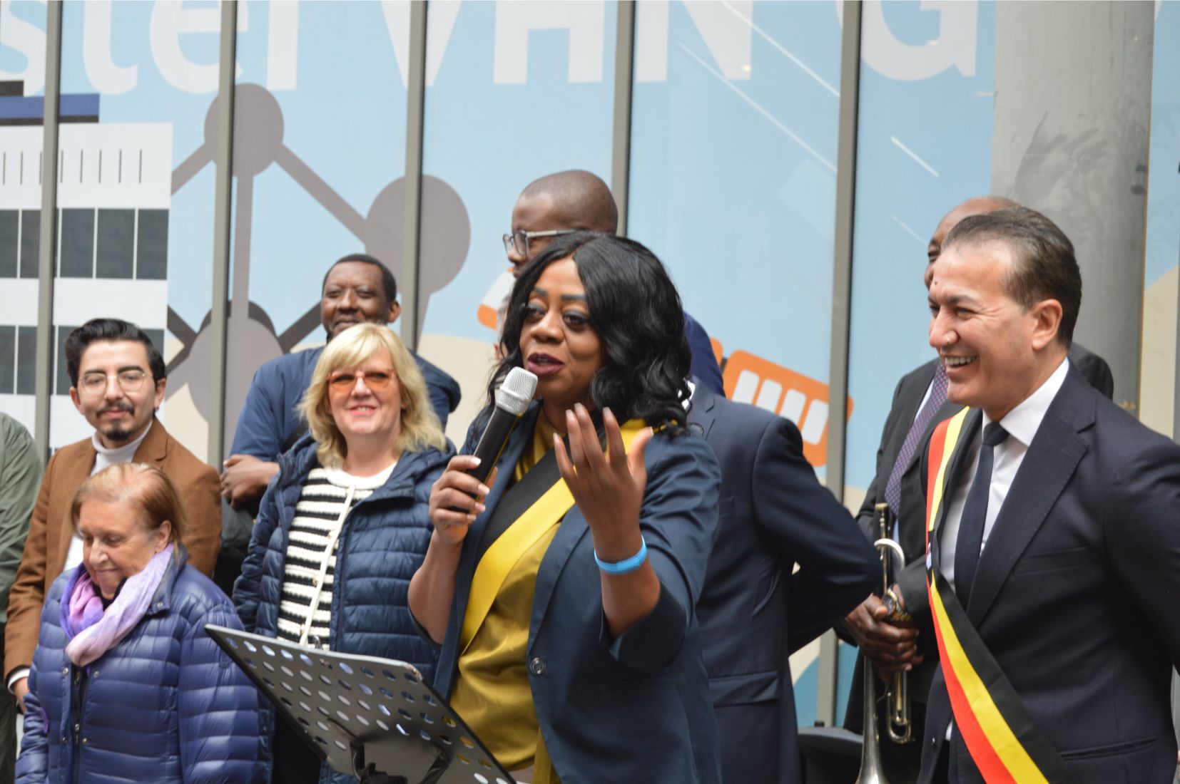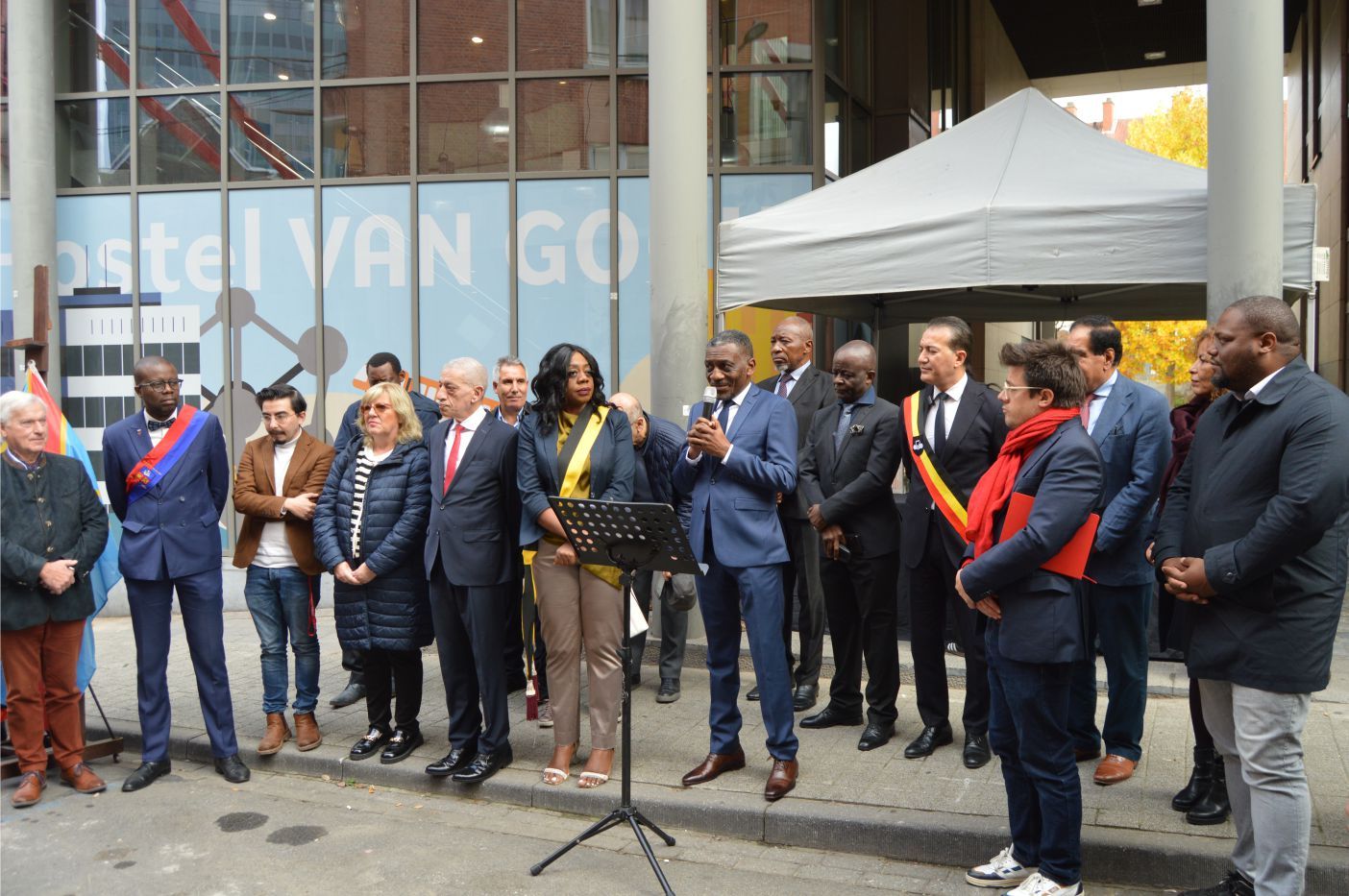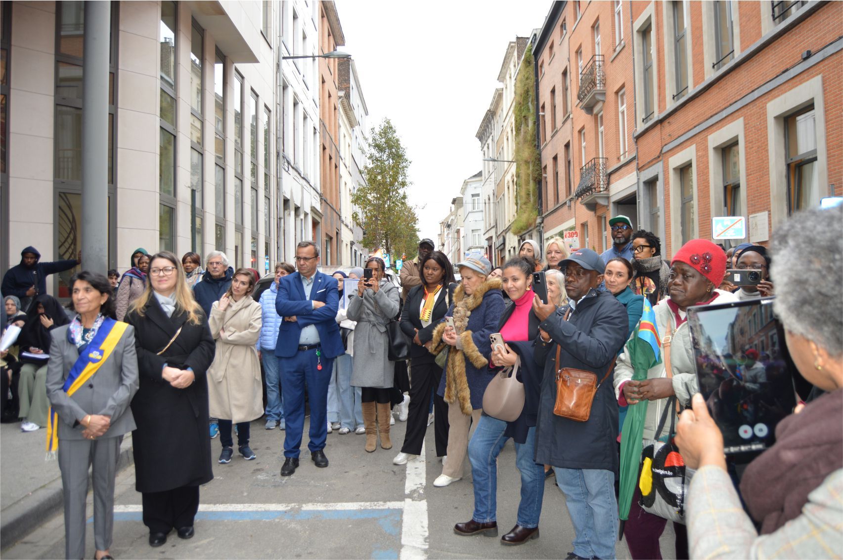 Plaket açılış ve takma törenine bazı Brüksel Milletvekilleri, Saint Josse Belediye Başkan Yardımcıları, Meclis Üyeleri, Kongo Büyükelçilik ve Konsolosluk Çalışanları, İlk gelenlerin torunları, STK Temsilcileri ve kalabalık davetli topluluğu katıldı.