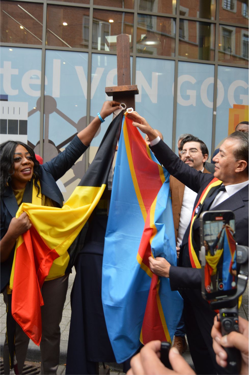 Belçika ve Kongo marşlarının çalınmasının ardından, Başkan Kır, Başkan Yardımcısı Dorah İlunga ve Kongo Temsilcileri, Belçika ve Kongo bayraklarına sarılı ‘Hatıra Plaketi’nin açılışını, alkışlarla eşliğinde birlikte gerçekleştirdiler.