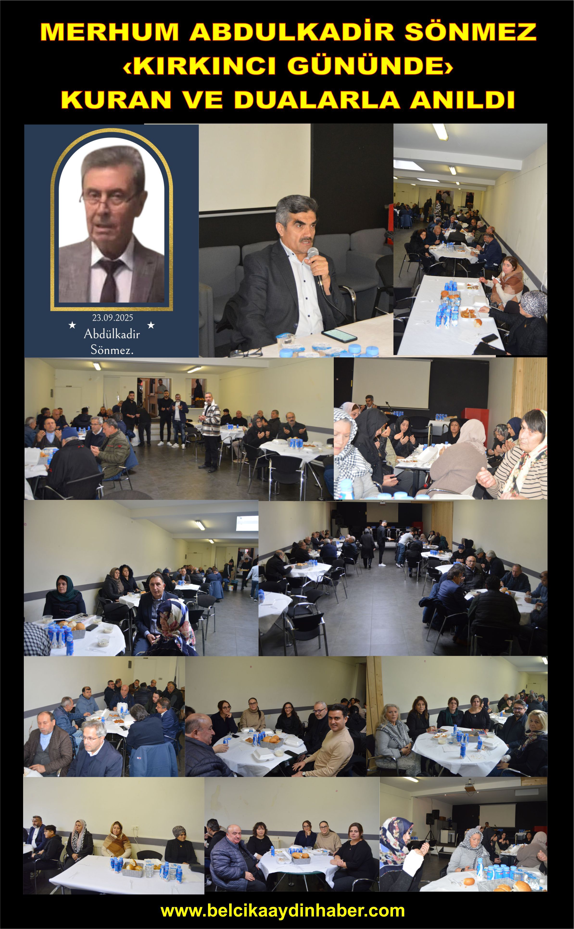 Belçika Türk Toplumu’nun saygın şahsiyetlerinden ve aslen Emirdağ’lı olan Merhum Abdulkadir Sönmez, Vefatı’nın Kırkıncı gününde Brüksel CHP Belçika Birliği salonunda düzenlenen Mevlüt töreninde, okunan Kuran, getirilen Selavatlar ve rahmet dualarıyla anıldı.