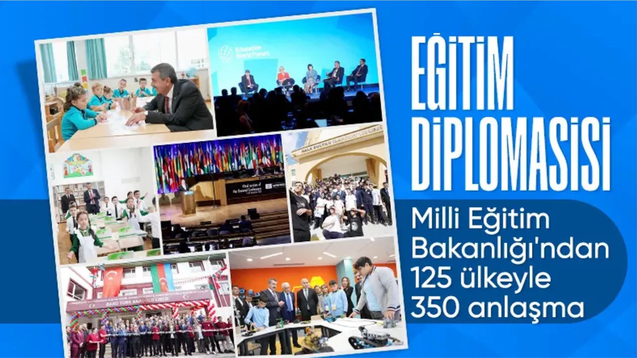 Milli Eğitim Bakanlığı, 125 ülkeyle 350 eğitim anlaşması yürütüyor. Türkiye, son yıllarda yürüttüğü kapsamlı eğitim diplomasisi faaliyetleriyle uluslararası arenada yumuşak gücünü güçlendirmeye devam ediyor.