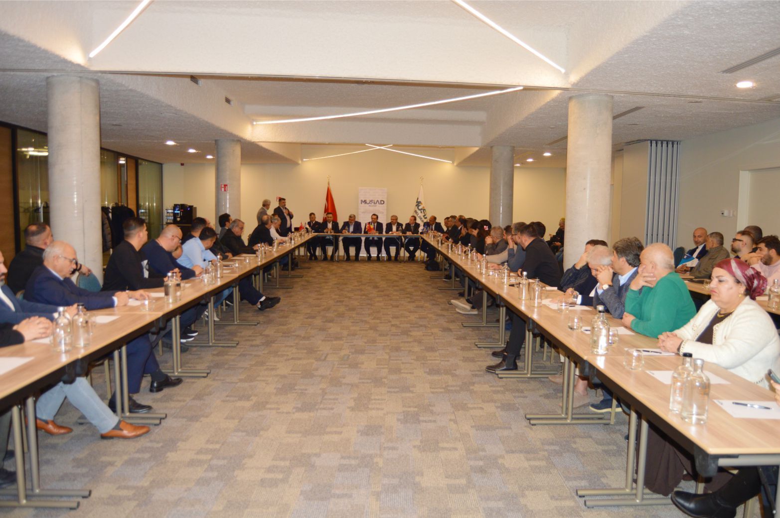 MÜSİAD Belçika'dan Uğur Çalışkan'ın moderatörlüğünde yapılan program, katılımcıların yatırım imkanları başta olmak üzere, çeşitli konularda sorularının yanıtlanmasının ve plaket takdimlerinin ardından sona erdi.