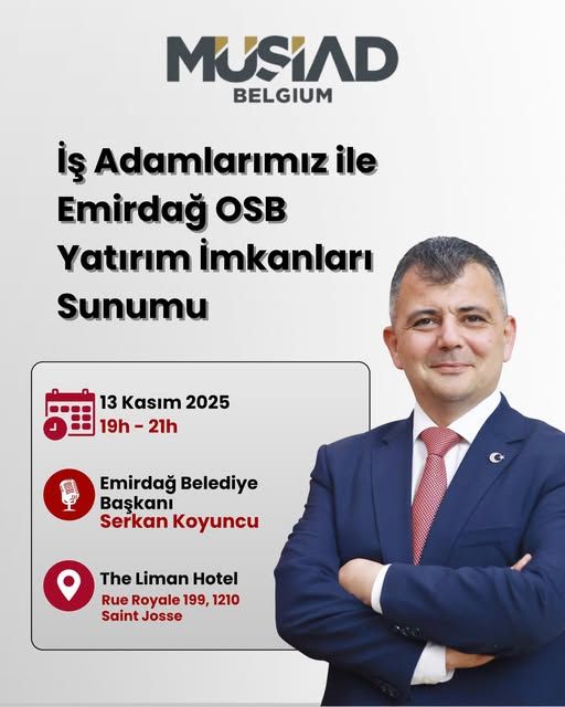 Müstakil Sanayici ve İşadamları Derneği (MÜSİAD) Belçika, Brüksel'de Emirdağ Organize Sanayi Bölgesi'ndeki (OSB) yatırım fırsatlarının tanıtıldığı geniş katılımlı bir program düzenledi.