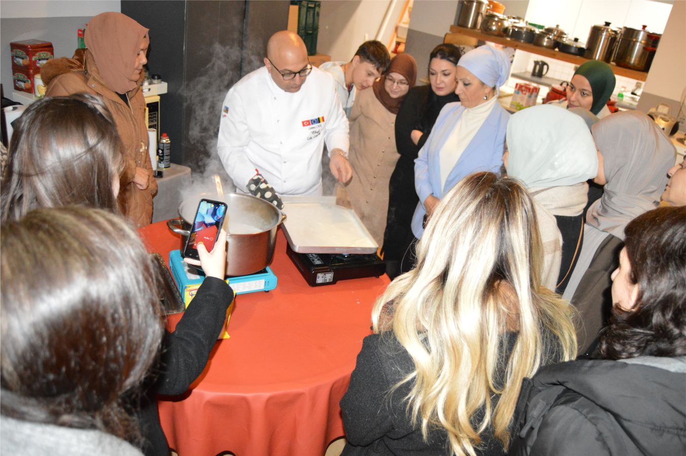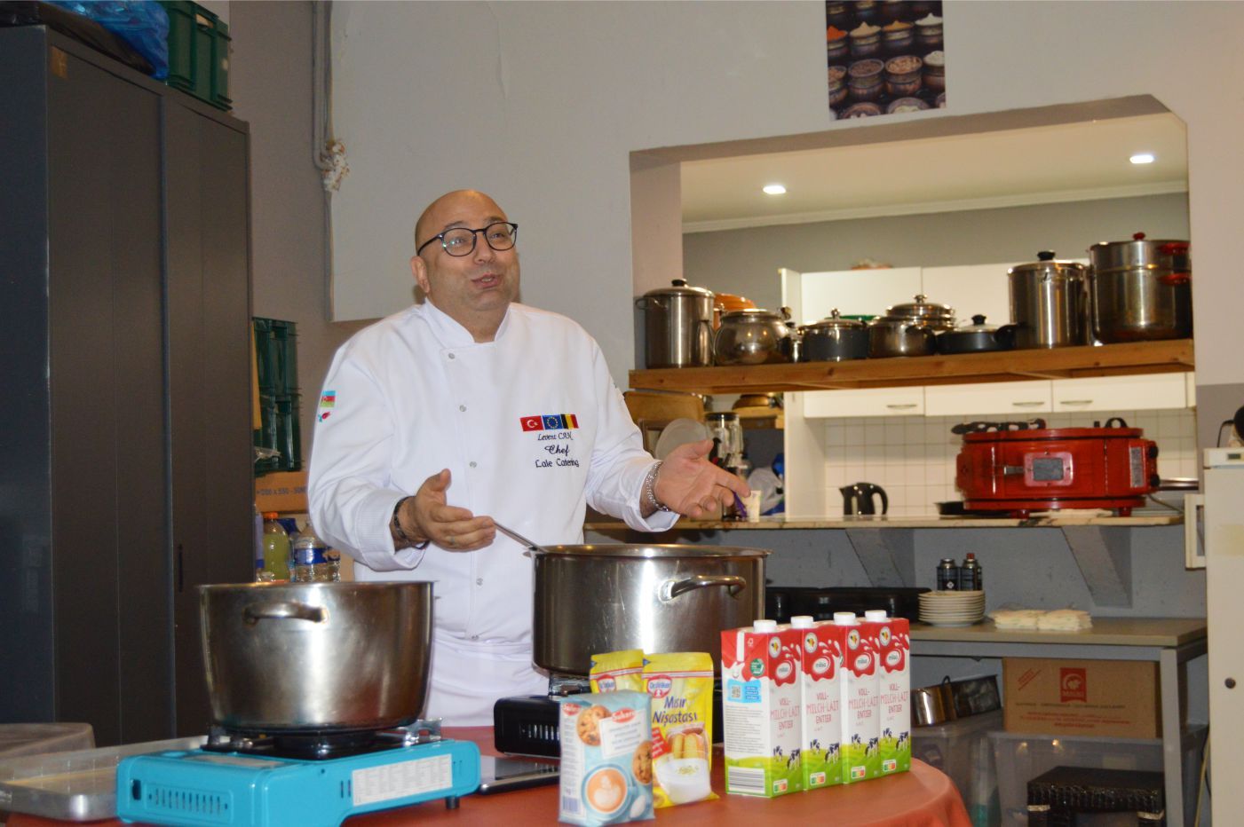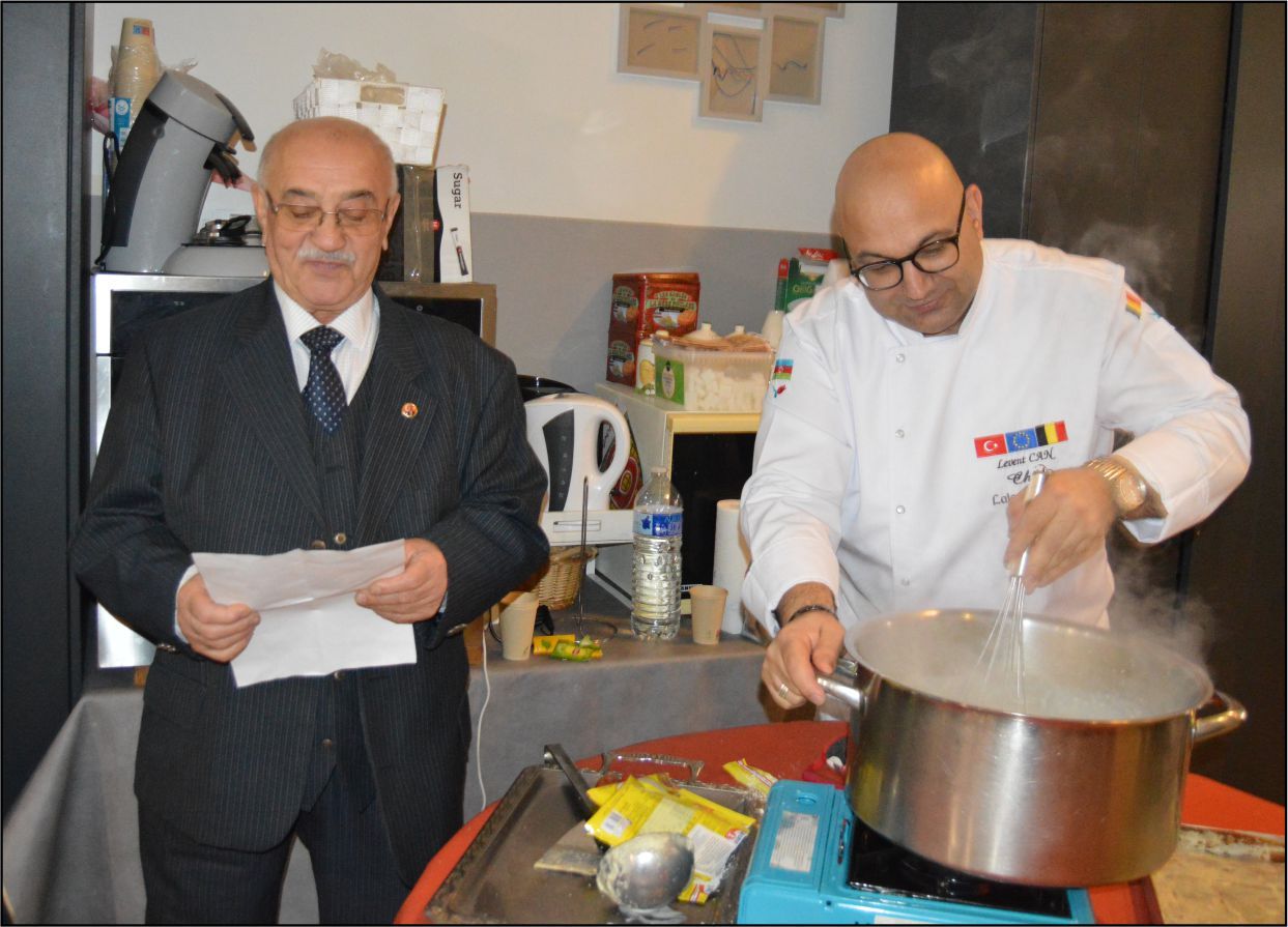 Saint josse’de bulunan ‘Heritage des femme asbl’ dernek lokalinde, tanınmış Şeflerden olan ‘Levent Can’ın başarılı tatbiki ve sunumuyla güzel bir ‘Kazan Dibi’ tatlısının hazırlanmasını ve sunumunu yaptı. Şef Haydar İnal’ında, Şef Levent Can’la sunum yapması ilan edilmişti. Ancak Şef İnal önceden belirlenen programı nedeniyle, bu ilk programa katılamadı ancak telefonla selam gönderip, başarı dileklerinde bulundu.