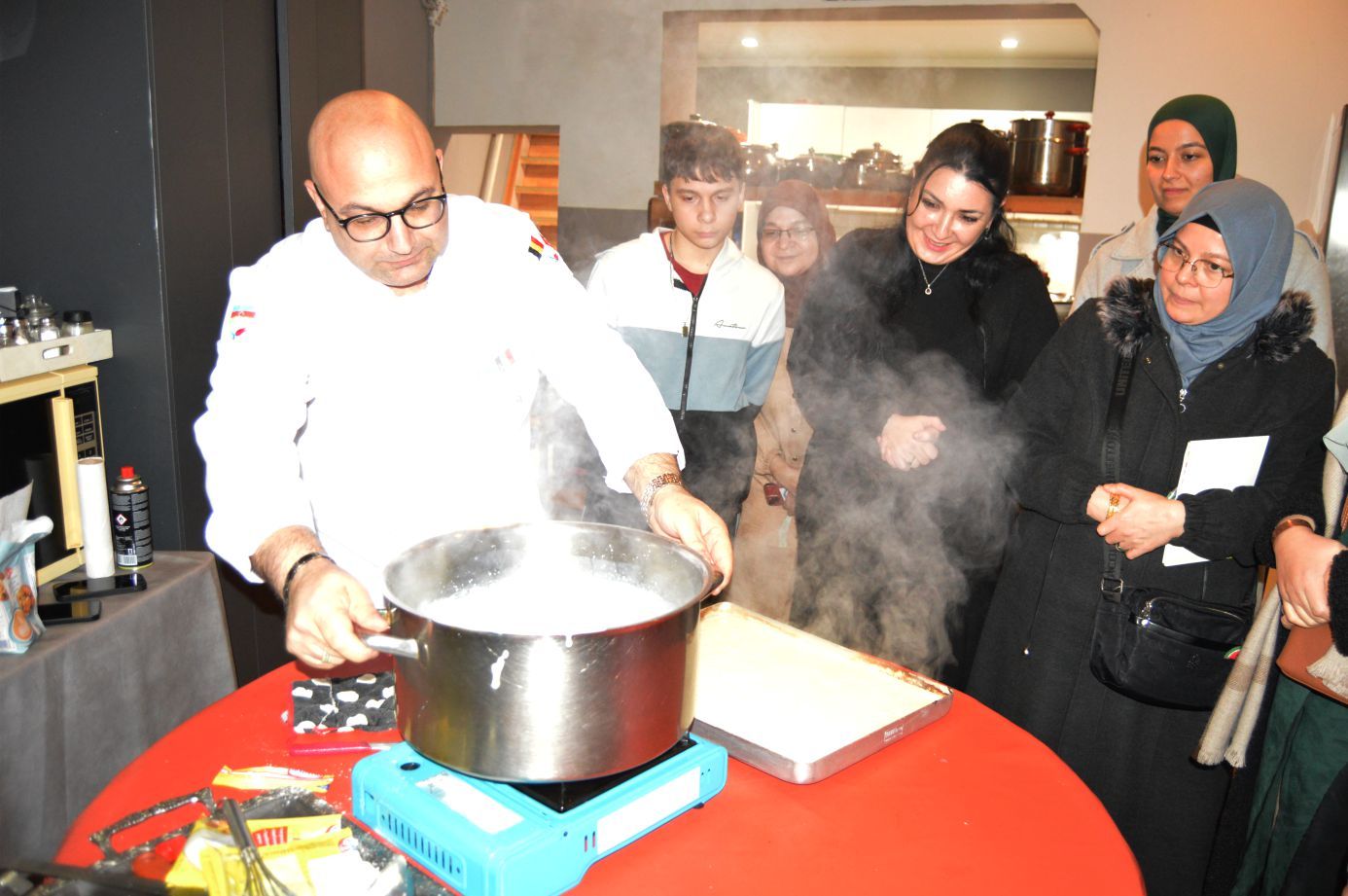 Davetli kursiyerler, Şef Levent Can’la birlikte hatıra görüntü alınmasıyla program sona erdi.