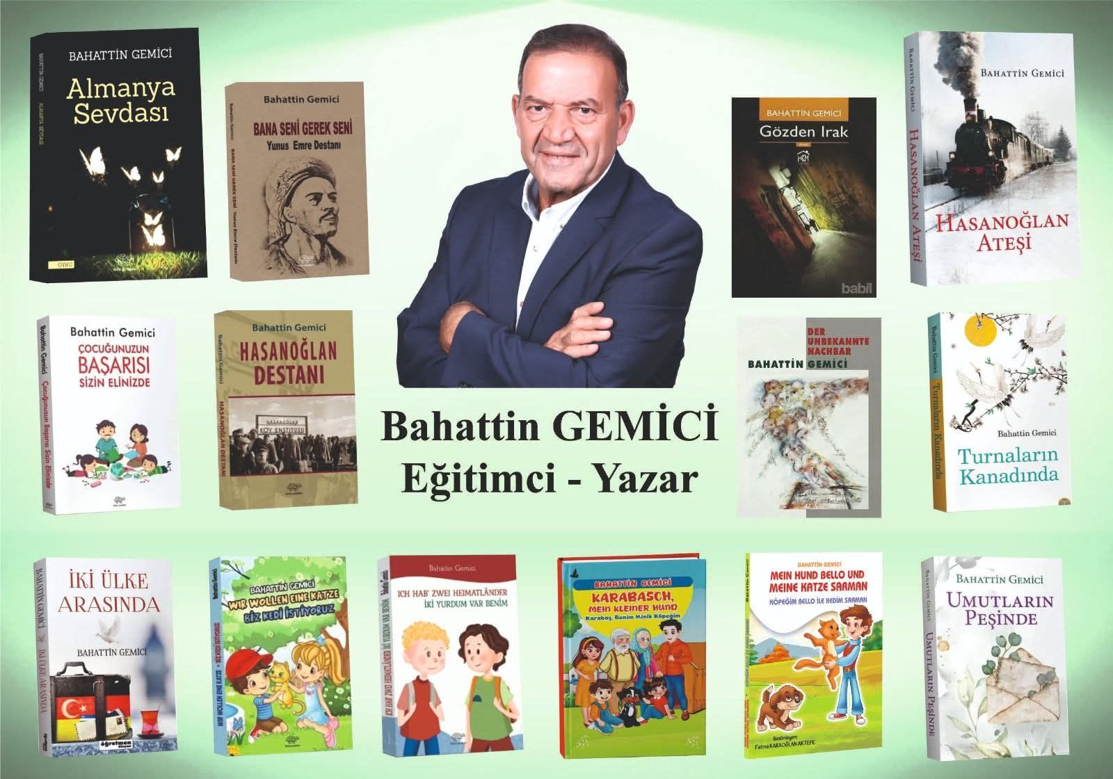 Bahattin Gemici, der in seinen Kinderbüchern die Liebe zu Mensch, Tier und Natur sowie Themen wie Mitgefühl, Toleranz und Nächstenliebe behandelt und dabei ein friedliches Miteinander fördern möchte, thematisiert in seinem Buch „İki Yurdum Var Benim – Ich hab zwei Heimatländer“ die Vorurteile, Diskriminierungen und Identitätsprobleme, denen Kinder mit Migrationshintergrund, die in Deutschland aufwachsen, in Schule und Alltag begegnen.