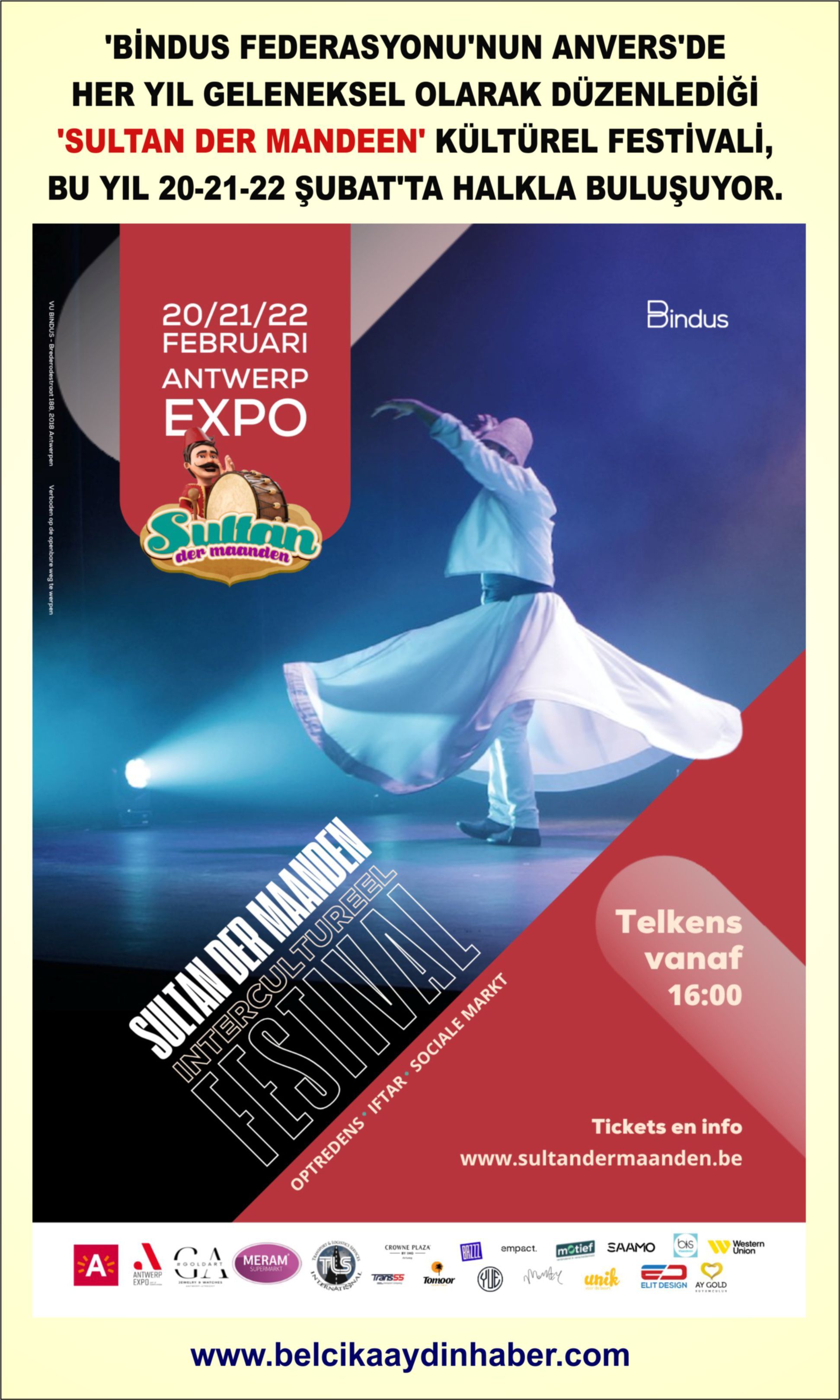 Belçika'da hizmet veren Üst çatı Sivil Toplum kuruluşlarından olan 'BİNDUS' başarılı etkinliklerini sürdürmekte. Gelenekksel hale getirdiği 'Sultan Der Maanden' festivali için hazırlıklarını sürdüren BİNDUS, 20-21-22 Şubat 2026'da Anvers'de büyük bir kültürel şölende binlerce katılımcıyı buluşturmanın heyecanını yaşamakta.