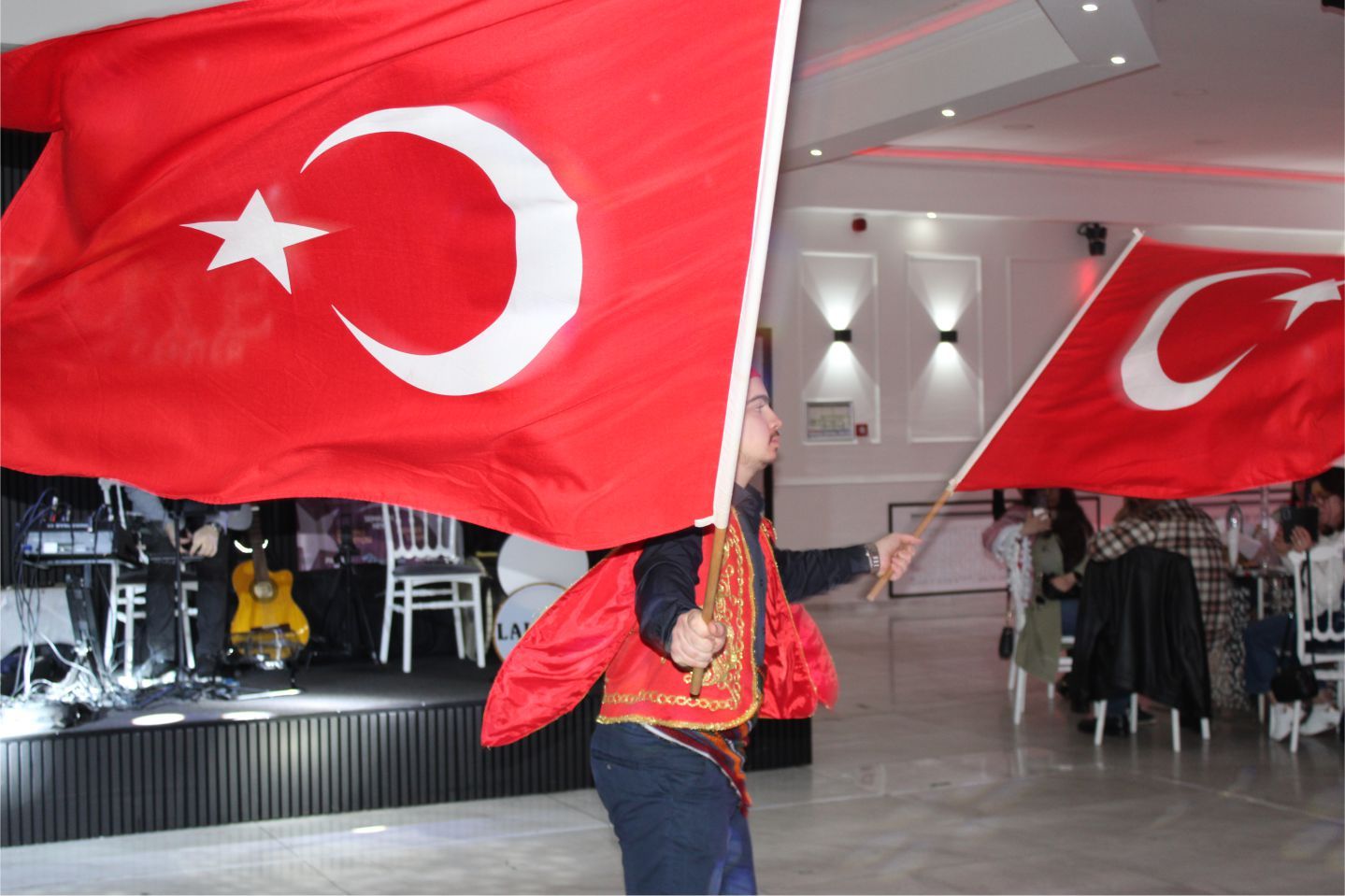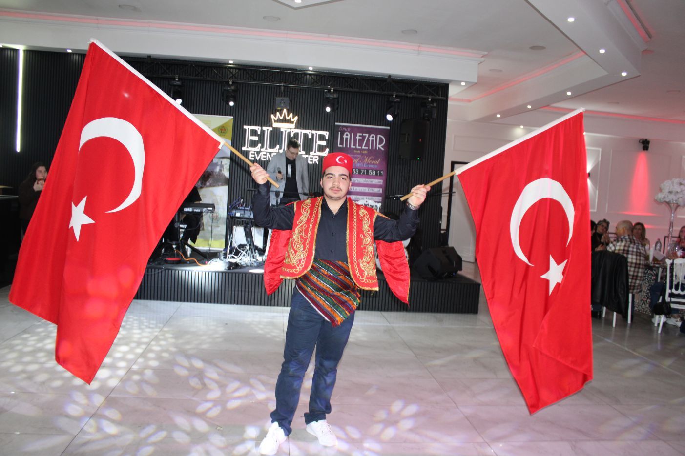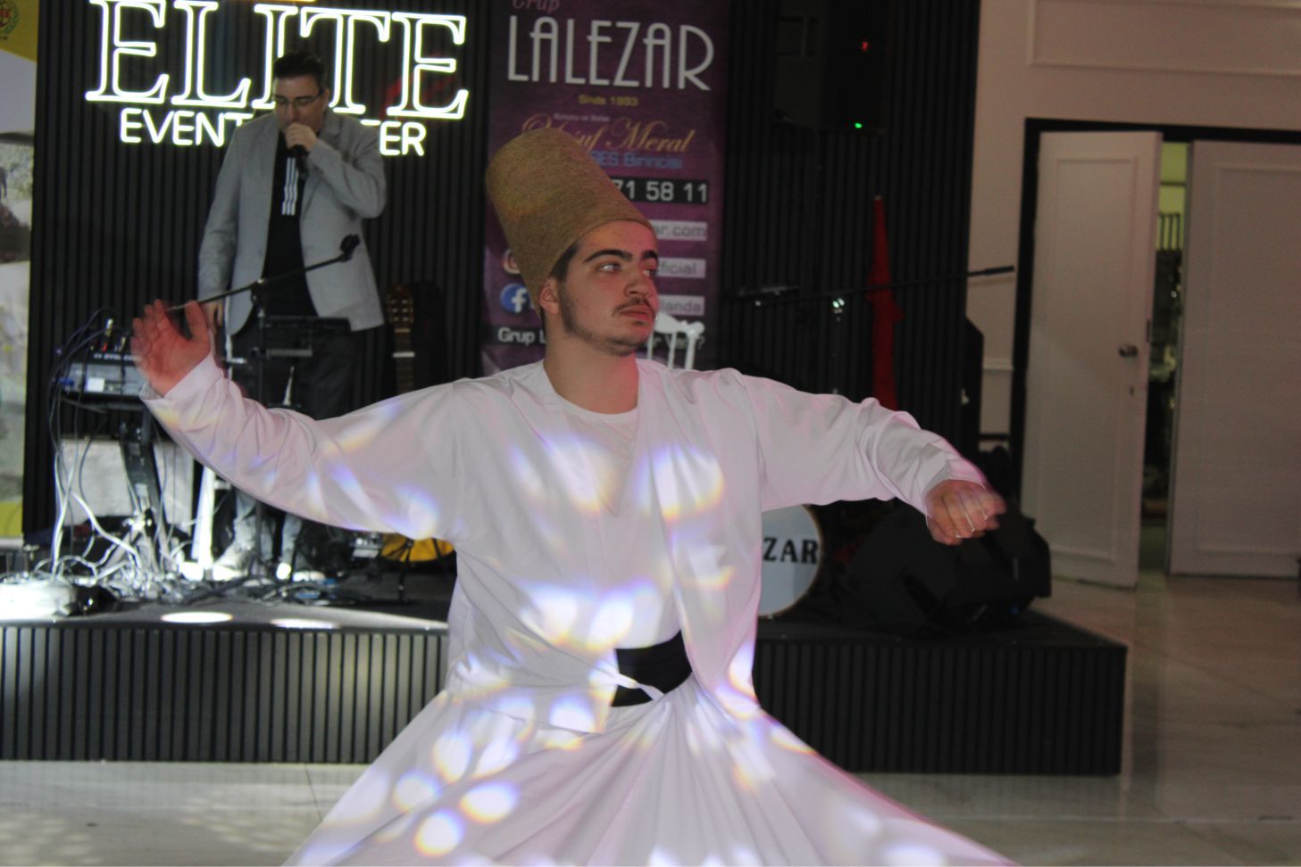 Daha sonra Avrupa’da tanınan İlahi Sanatçısı Yusuf Meral, Tayfun Yenilmez, Ahmet Muhsin Öztürk’ten oluşan İlahi gurubu ‘Lalezar’ ekibi gece boyu alkışlandı. Güzel sesli ve duygulu Yusuf Meral, duygulu ve güzel sesiyle birbirinden güzel ilahi ve deyişleriyle geceye renk kattı. Bayrak Şovu coşkuyu artırdı. Tüm davetliler bayrak şov’u dikkatle izleyip, milli şarkılara eşlik ettiler. ‘Mevlevi gösterisi’ alkışlarla karşılandı.