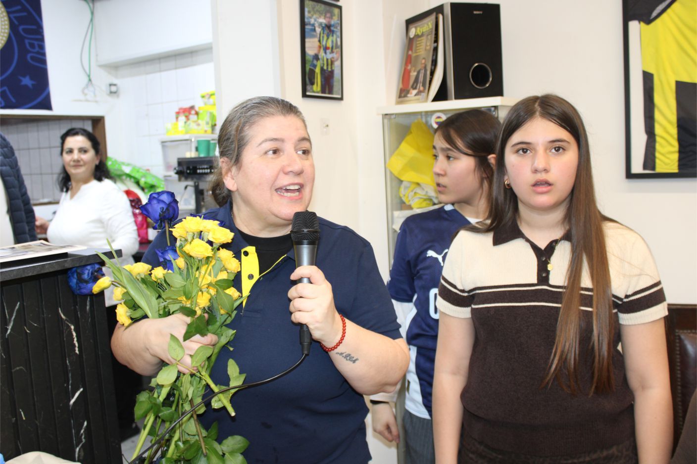 ‘8 Mart Dünya Kadınlar Günü’ nedeniyle Kadın Kolları Başkanı Ebru Alkan Manço, günün anlamı ile ilgili güzel bir konuşma yaparak, Kadın davetli ve genç kızlara sarı lacivert gül ve laleler takdim etti.