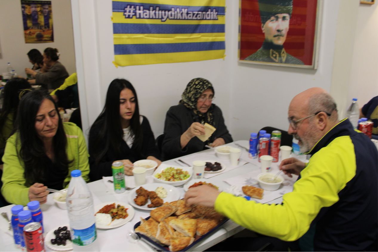 Taraftarlar, iftar sonrası maçı kazanmanın coşkusuyla Fenerbahçe şarkılarını birlikte söylediler. Sıcak bir atmosferde yapılan iftar da zaman zaman duygulu anlarda yaşandı.