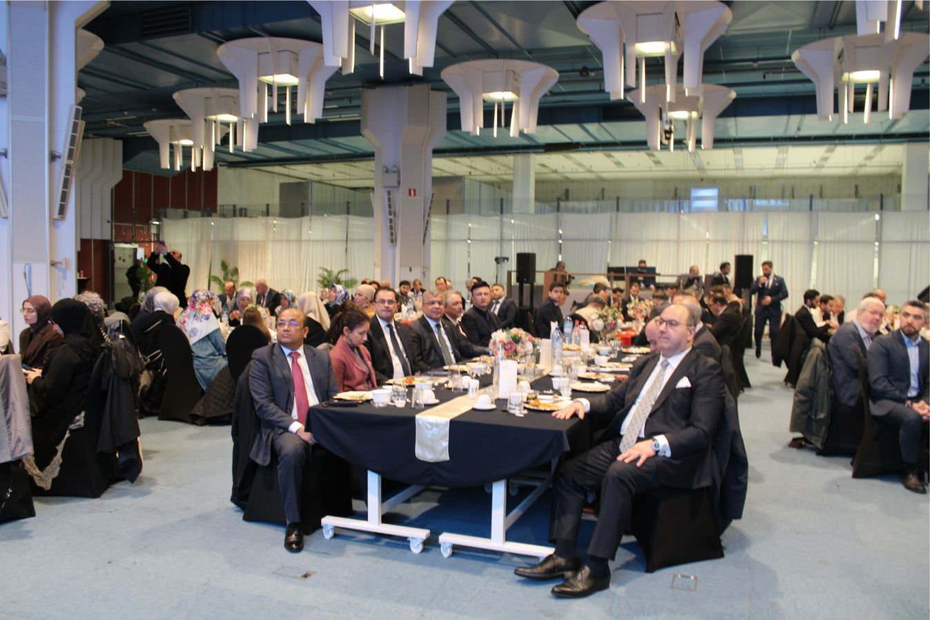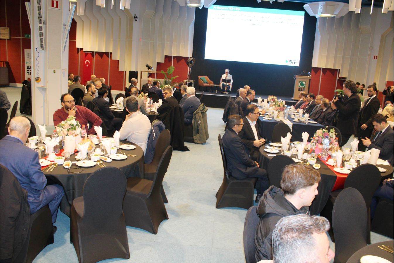 BİF’e bağlı Okul Salonunda gerçekleştirilen İftar programında BİF Başkanı Muhammed Ünal ve Yönetim Kurulu Üyelerinin davetlilerini karşıladığı programa, T.C. Milli Savunma Bakan Yardımcısı Bilal Durdali, T.C. AB Nezdinde Büyükelçi Yaprak Balkan, T.C. Brüksel Büyükelçisi Görkem Barış Tantekin, T.C. Nato Nezdinde Büyükelçi Basat Öztürk, T.C. Brüksel Büyükelçiliği Askeri Ateşe Albay Ramazan Türkmen, Bangladeş Brüksel Büyükelçisi Khandker Masudul Alam, Brüksel Milletvekilleri Hasan Koyuncu, Şevket Temiz, İbrahim Dönmez, Sadık Köksal, IGM Eğitim Başkan Yardımcısı, Dr. Hakan Aydın, Av. Kürşat Bilge, EMB Başkanı Mehmet Üstün, Saint Josse Başkanı Emir Kır, Yabancı Misyon Şefleri, BTMB Başkanı Hüseyin Dönmez, Turkish Lady Genel Başkanı Derya Aliç, BİF Onursal başkanlarından Zeki Bayraktar, STK Temsilcileri, Eğitmenler, Basın mensupları ve 300’ü aşkın davetli katıldı.