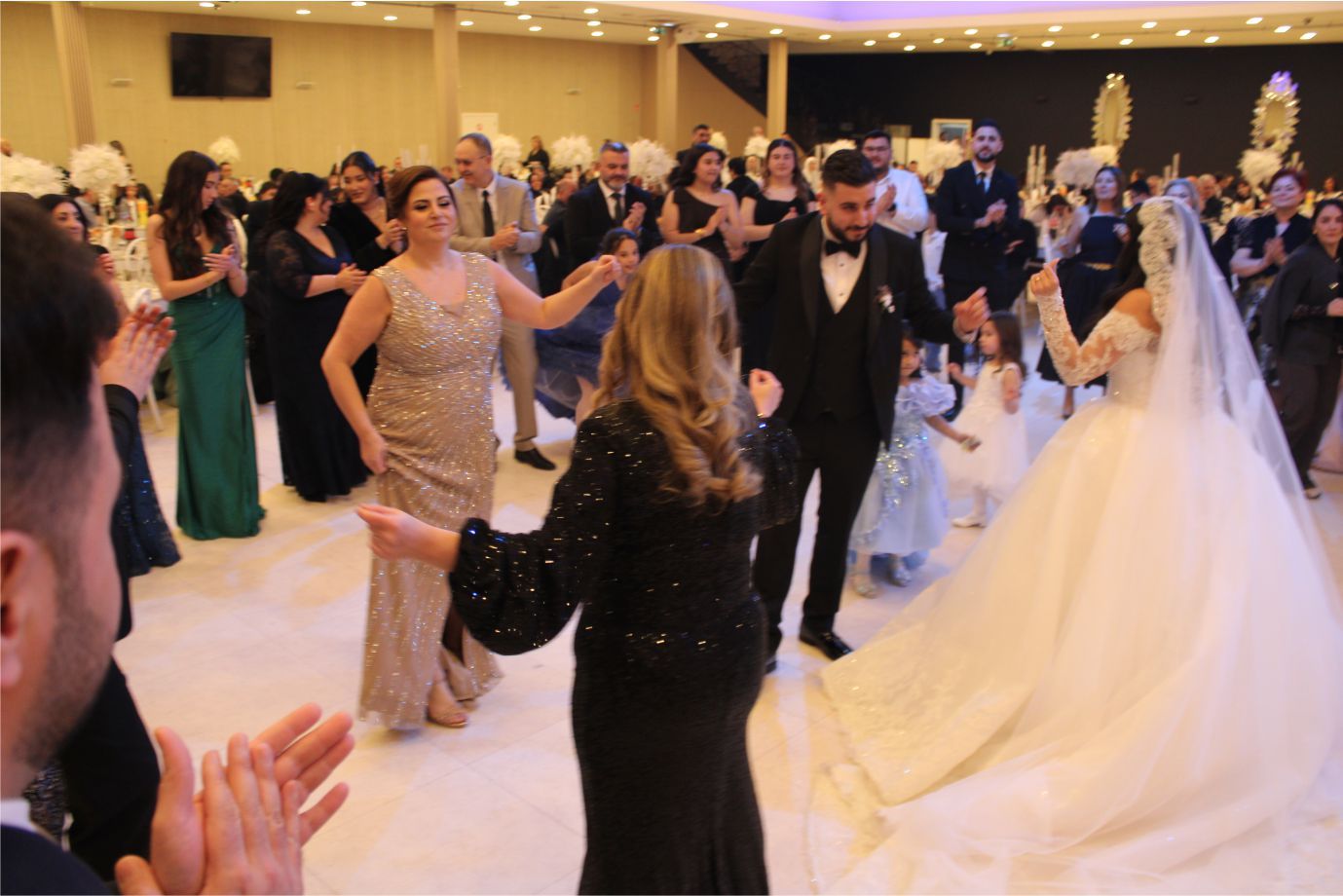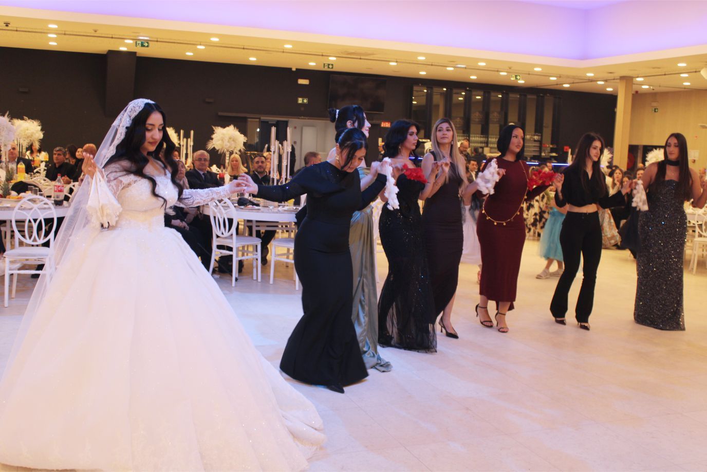Genç Çiftin birlikte bir müddet dans etmesi ardından, aileleri ve davetlilerde danslarıyla gençlere eşlik ettiler.