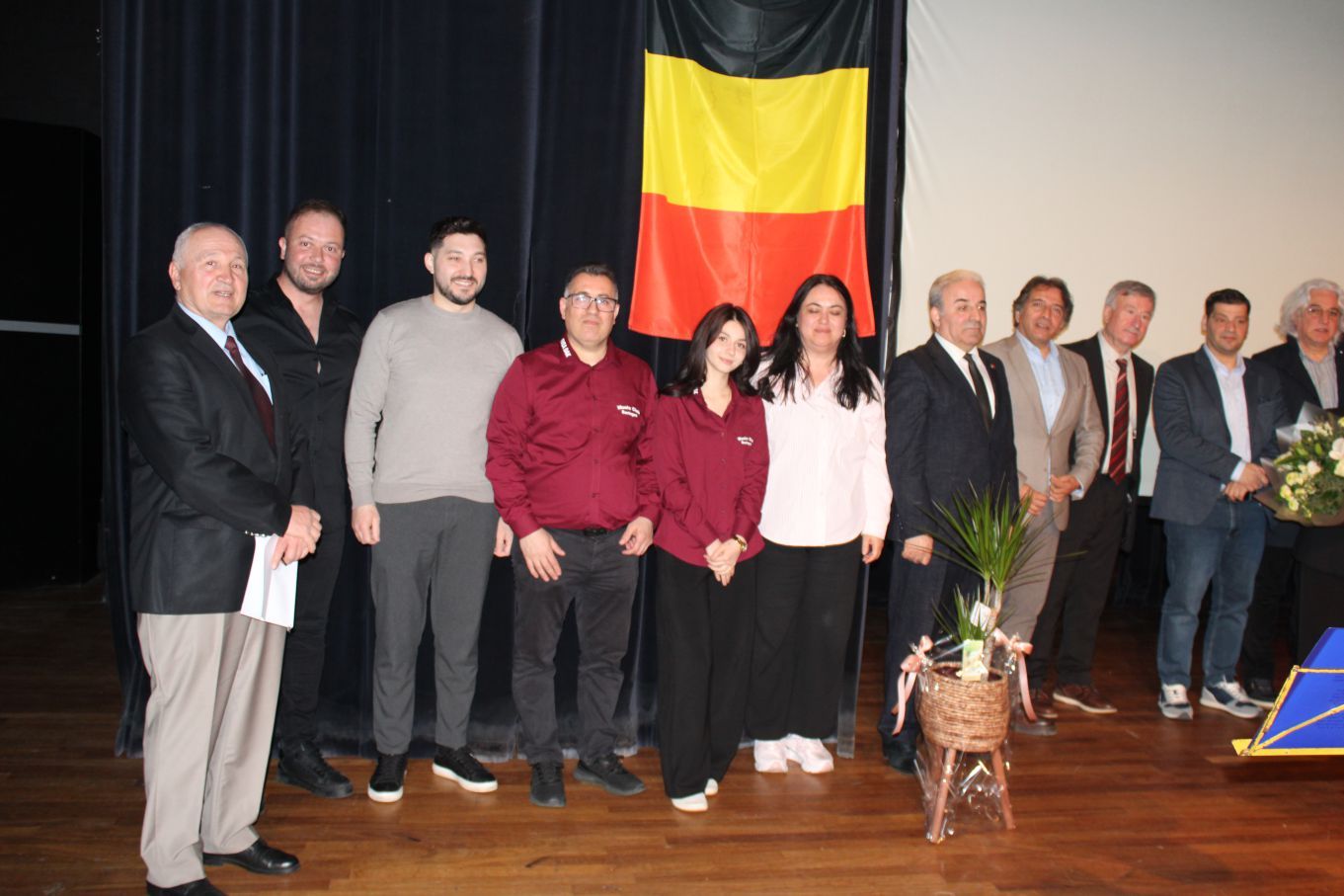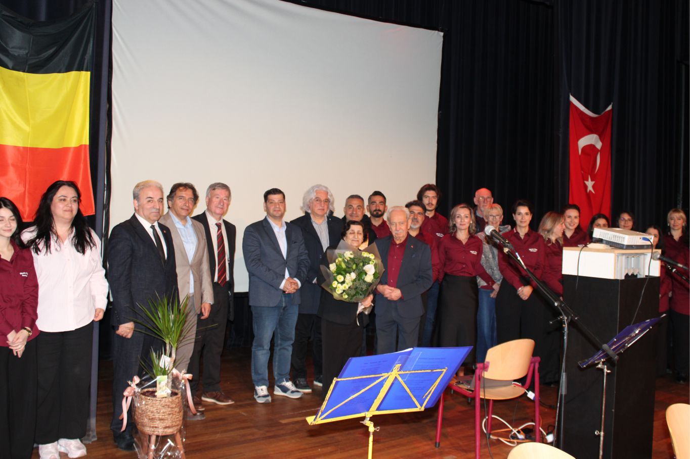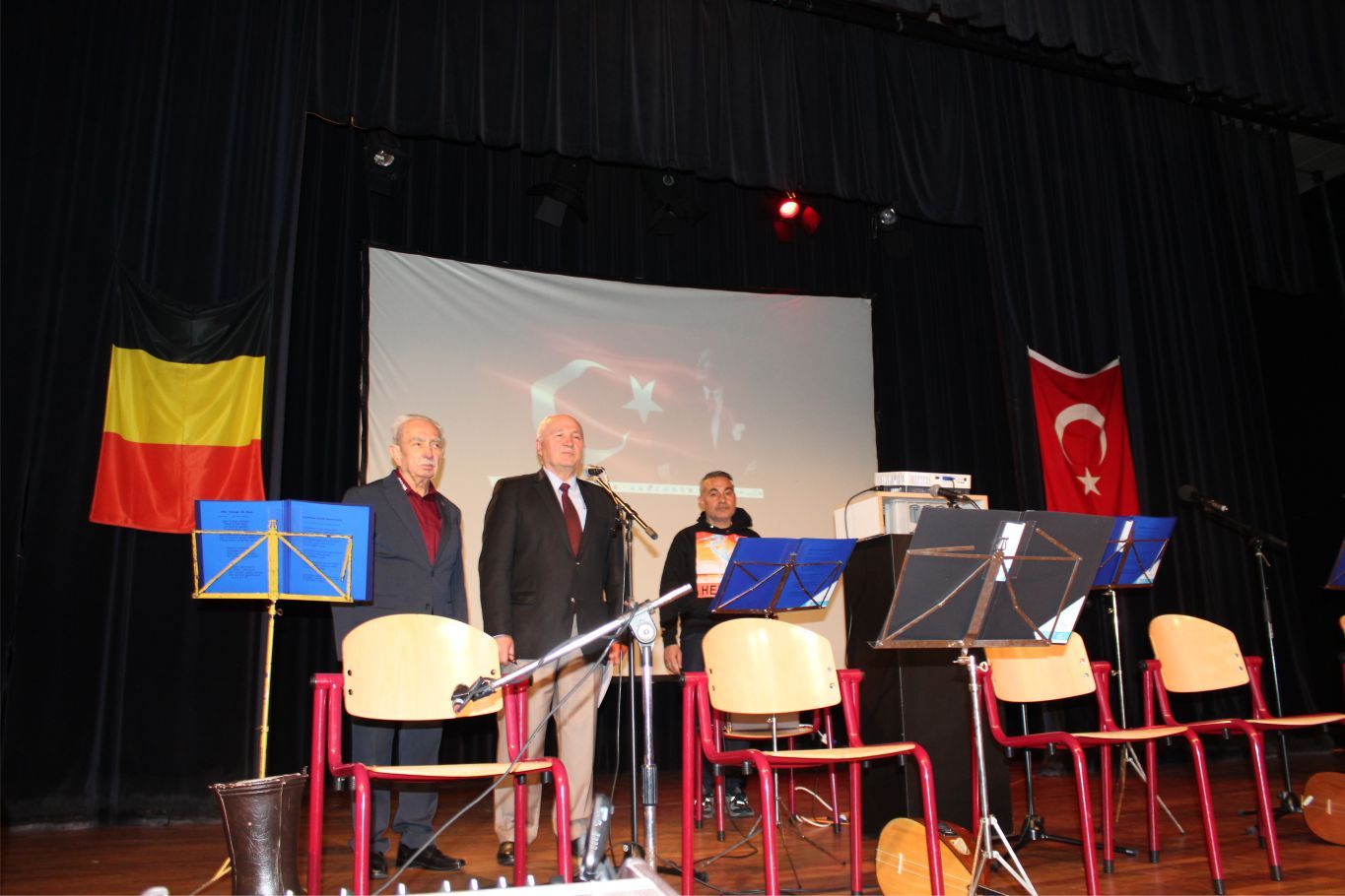 Kutlama programı BTMB Başkanı Hüseyin Dönmez’in başarılı sunumu, Türk ve Belçika marşlarının okunması, şehitlere saygı duruşuyla start aldı.