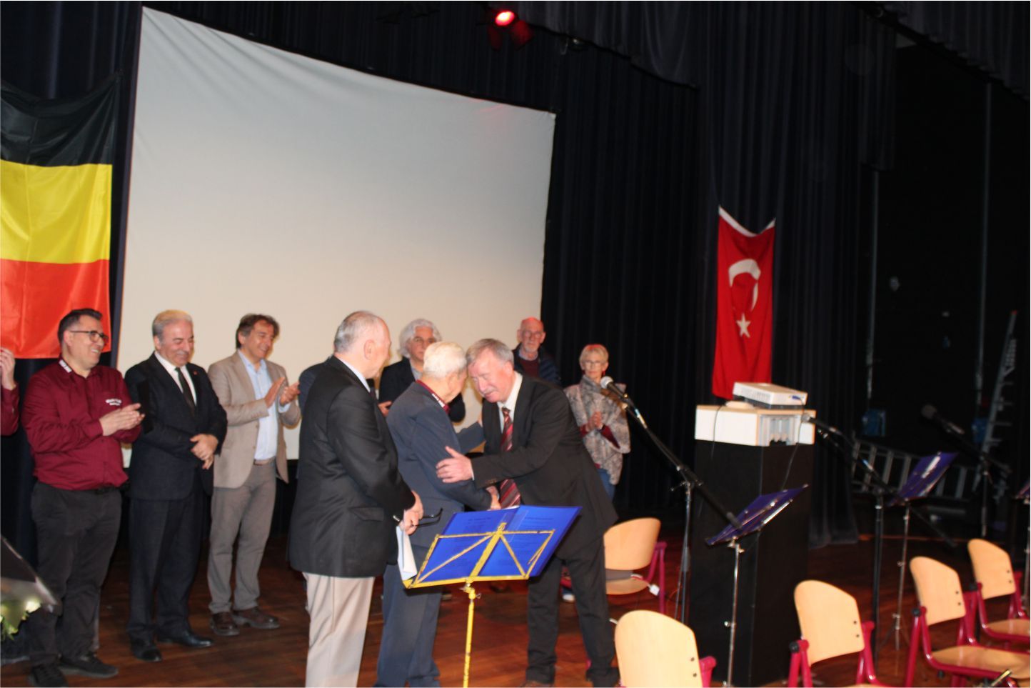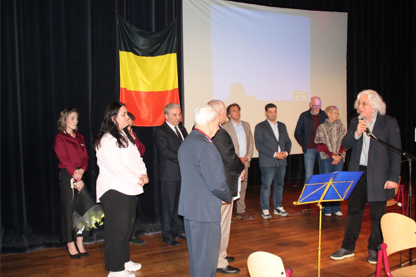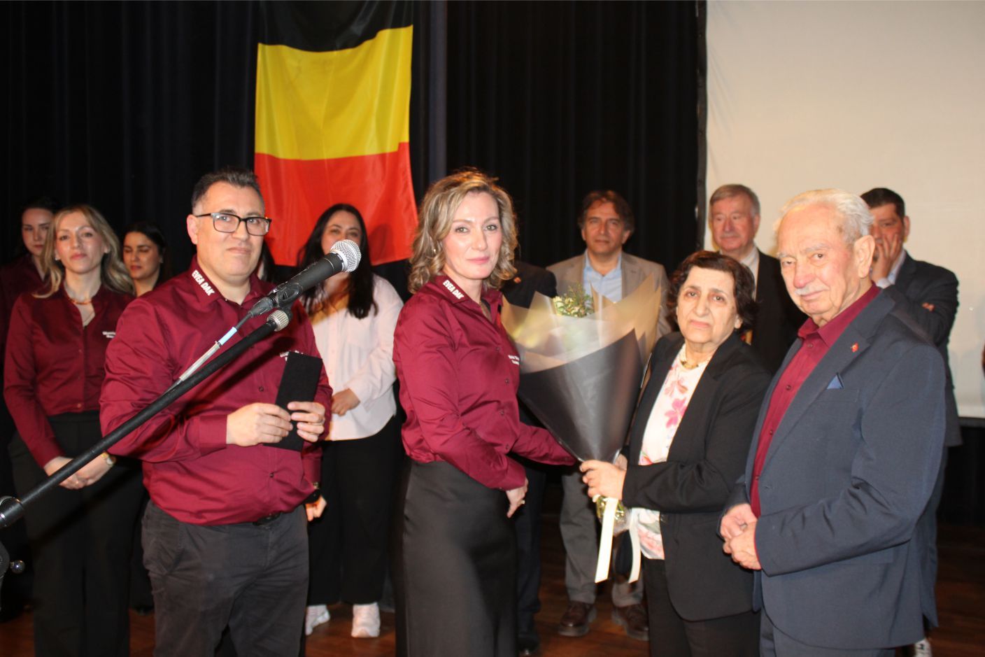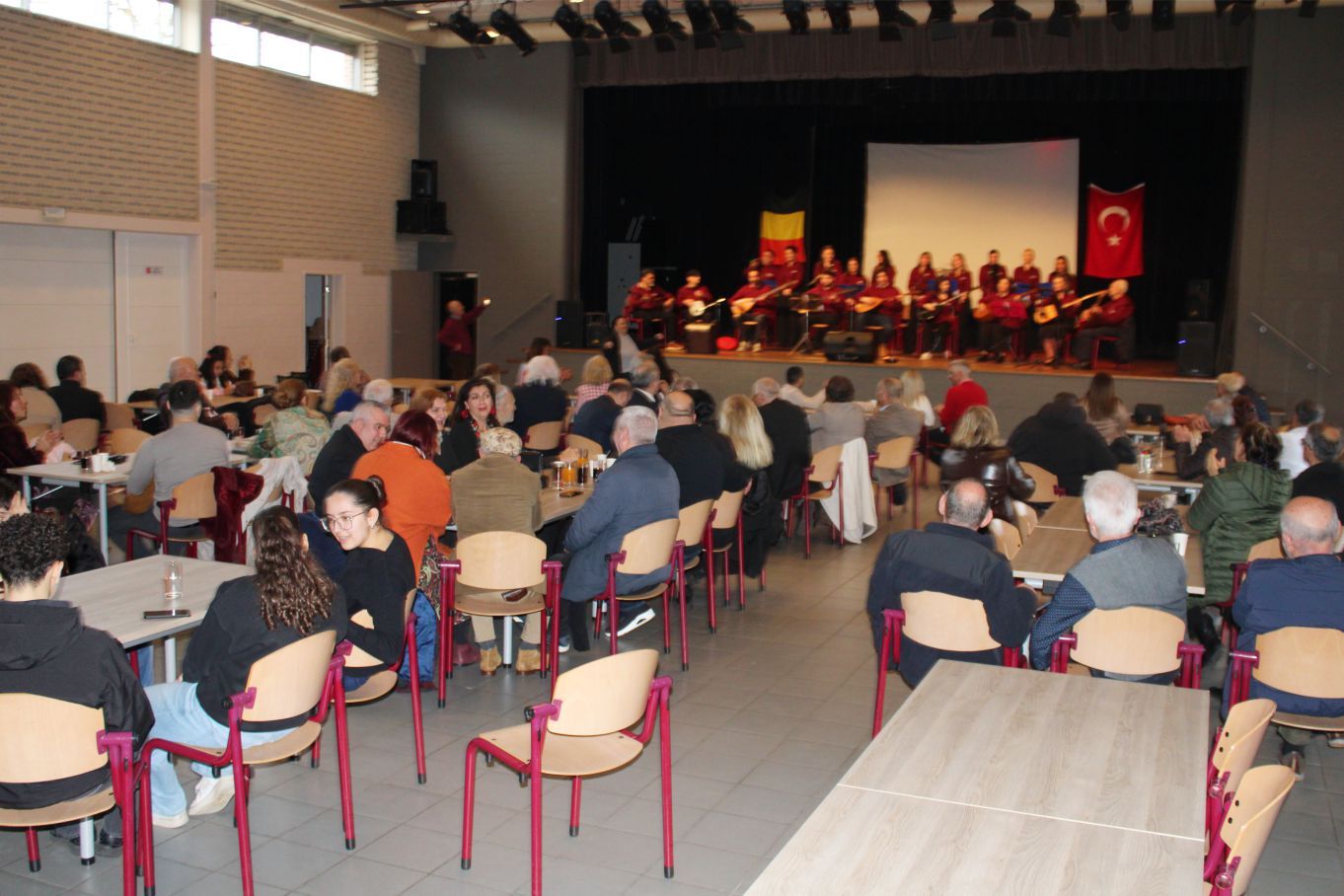 Kutlama programı BTMB Başkanı Hüseyin Dönmez’in başarılı sunumu, Türk ve Belçika marşlarının okunması, şehitlere saygı duruşuyla start aldı.