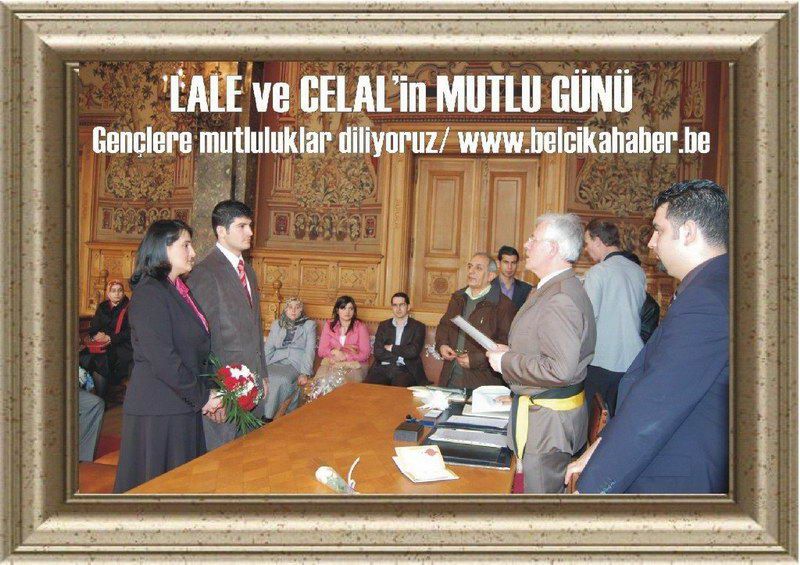 Schaerbeek Evlendirme salonunda evlendirmeden sorumlu Başkan yardımcısı Bernard Guillaumeâın bizzat kıydığı nikah sonrası, Lale ve Celal birbirini tebrik ederek, mutluluk gülücükleriyle davetlileri selamladılar. Halil Baş, Kıymet Baş, Dudu Canbay ve İsmail Pehlivanoğlu evlatlarının mutlu günlerinde birarada olmanın sevincini yaşadılar. İmza töreninden sonra, nikah şekerleri davetlilere dağıtıldı. Aile resimleriyle gençlerin mutluluğu anılaştırıldı. Lale ve Celal çiftini tebrik ediyor, mutluluklar diliyoruz. www.belcikahaber.be